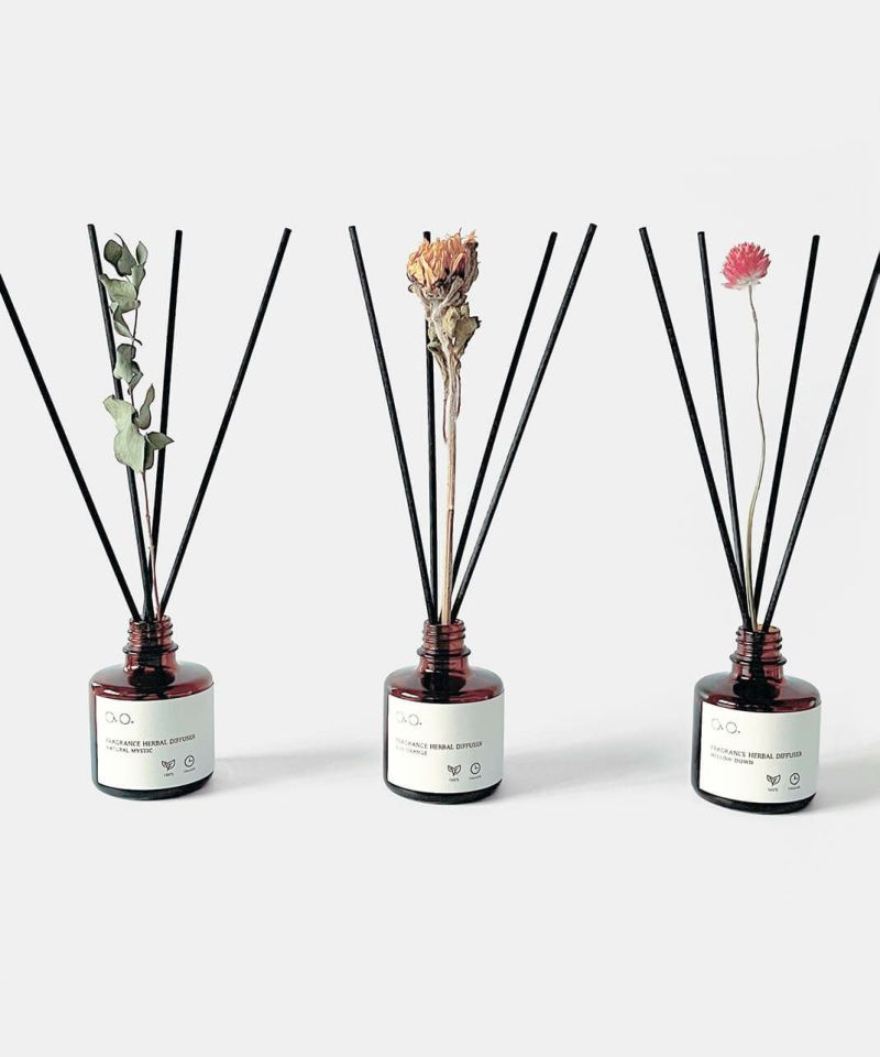 1輪挿しの美しいハーブの彩りと、天然精油100%で調香した、自然ならではの優しくて深みのある香りを日常にお届けします。心を穏やかに導いてくれるような天然由来成分100%なハンドメイドディフューザーです。付属のドライフラワーは、香りだけではなくインテリアとしてもお楽しみいただけます。