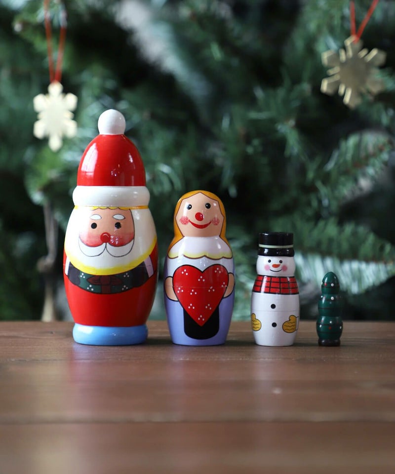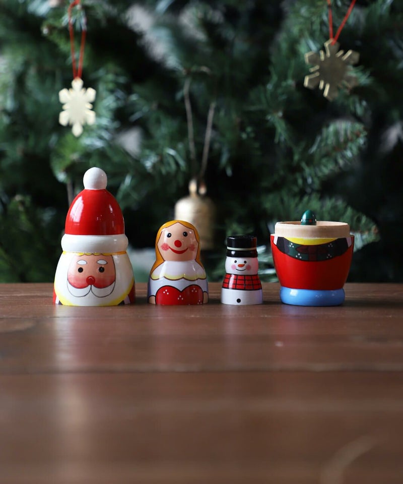 サンタクロースの本場でもあるフィンランド、北欧をイメージしたサンタマトリョーシカ。 棚上に並べるだけで一気にクリスマスモードに。年に一度のホリデーシーズンを盛り上げてくれる愛らしいデザインのオブジェです。