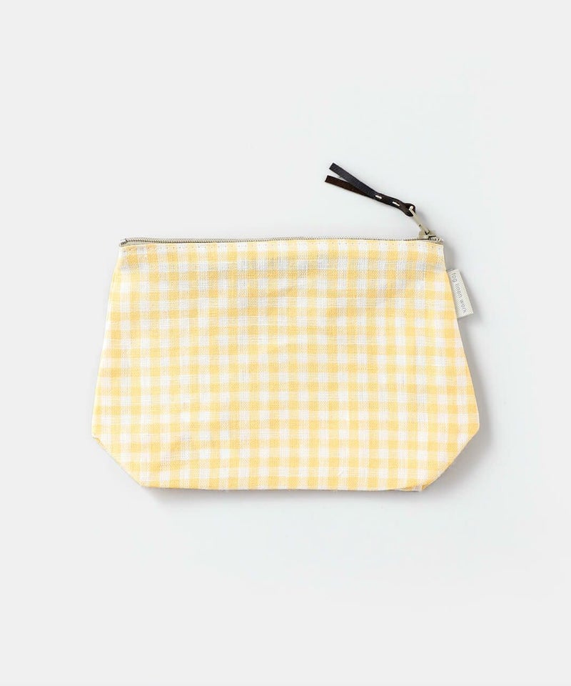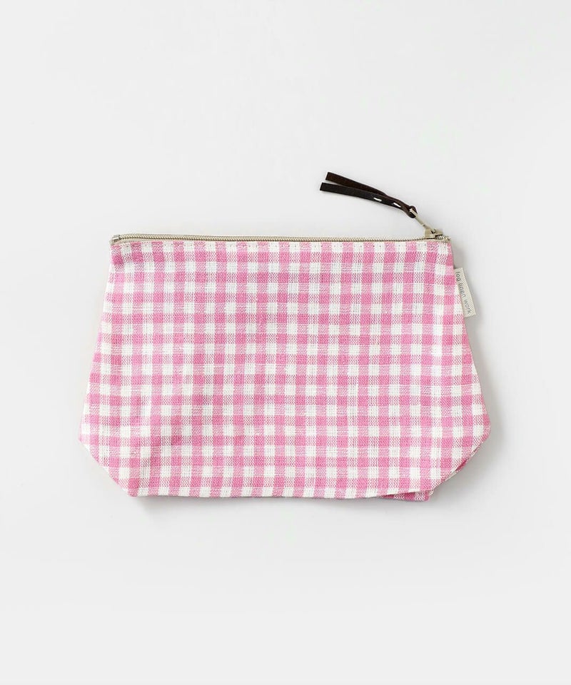 シンプルな形とほどよいサイズ感で毎日のお供にぴったりなクリスポーチ。 軽いので持ち運びもしやすく、バッグの中にいれておいても嵩張りません。 汚れたら気軽にお洗濯ができるのが嬉しいポイント。 底面にマチがあるので、見た目以上にたっぷりと収納できます。 メイク用品や歯ブラシなどのエチケットセットを入れたり、ポーチの色柄ごとに中身を変えて使ってもいいですね。 ファスナーにはレザーのストラップがついていて、引っ張りやすいのもポイントです。 毎日のバッグに入れて、デイリーにお使いください。ちょっとしたプレゼントにもおすすめです。