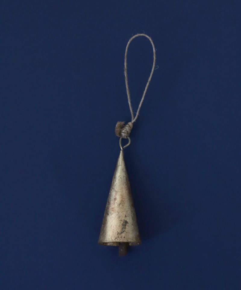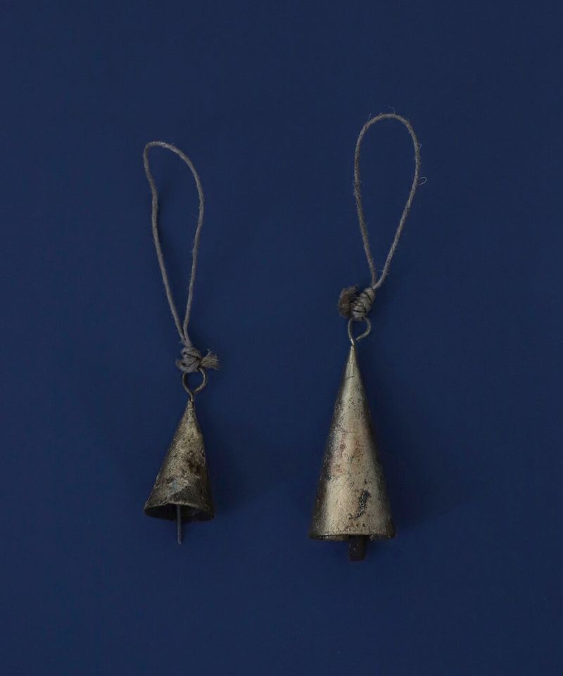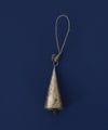 インドから届いたとんがり帽子のようなデザインのベル。 アンティーク調のくすんだ色合いで趣があり、ひとつひとつハンドメイドで音色が違うのも魅力です。 大きさはS・Mの2サイズ。 ドアや窓辺にぶら下げたり、グリーンに吊るしてもいいですね。 ホリデイシーズンにはスワッグと一緒にリボンで結んでも素敵です。