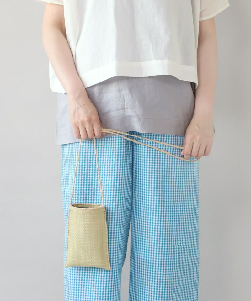 水草で編んだ涼しげな雰囲気のポシェット。 密度の高い編みこみが特徴的で、使い込むごとに馴染みんでいきます。 スマートフォンや貴重品など、ちょこっと持ちたいときに重宝します。