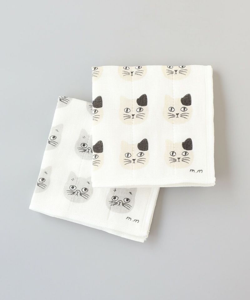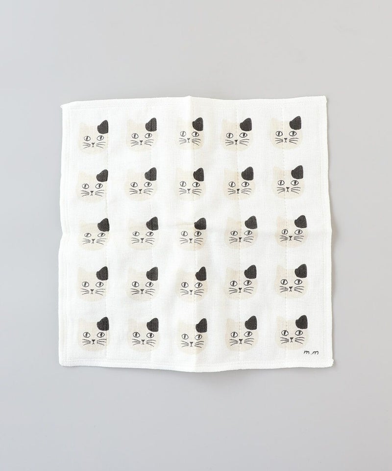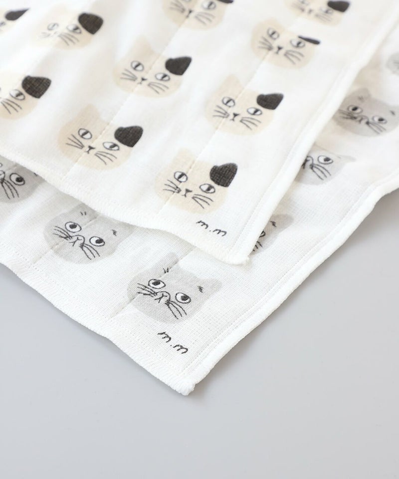 表面は柔らかな肌さわりのコットン、中と裏面は吸水性が高く汚れが落ちやすいレーヨンを7枚重ねたかやふきん。 テーブルの汚れを拭く際はレーヨン面を使用すると、ふきんを洗った時に汚れが取りやすいのでおすすめです。 松尾さんの描くスンとした表情がキュートな猫たちがキッチンを楽しく彩ります。