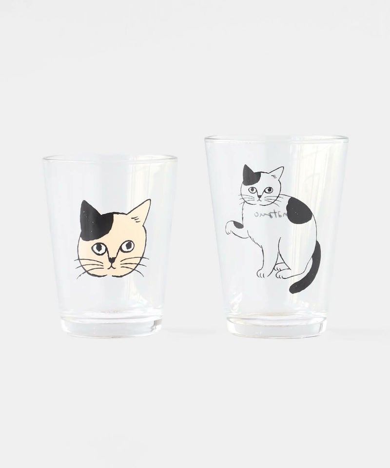 松尾ミユキさんの描く、じっと見つめるネコたちのグラスです。小さめサイズで集めたくなる愛らしさです。
