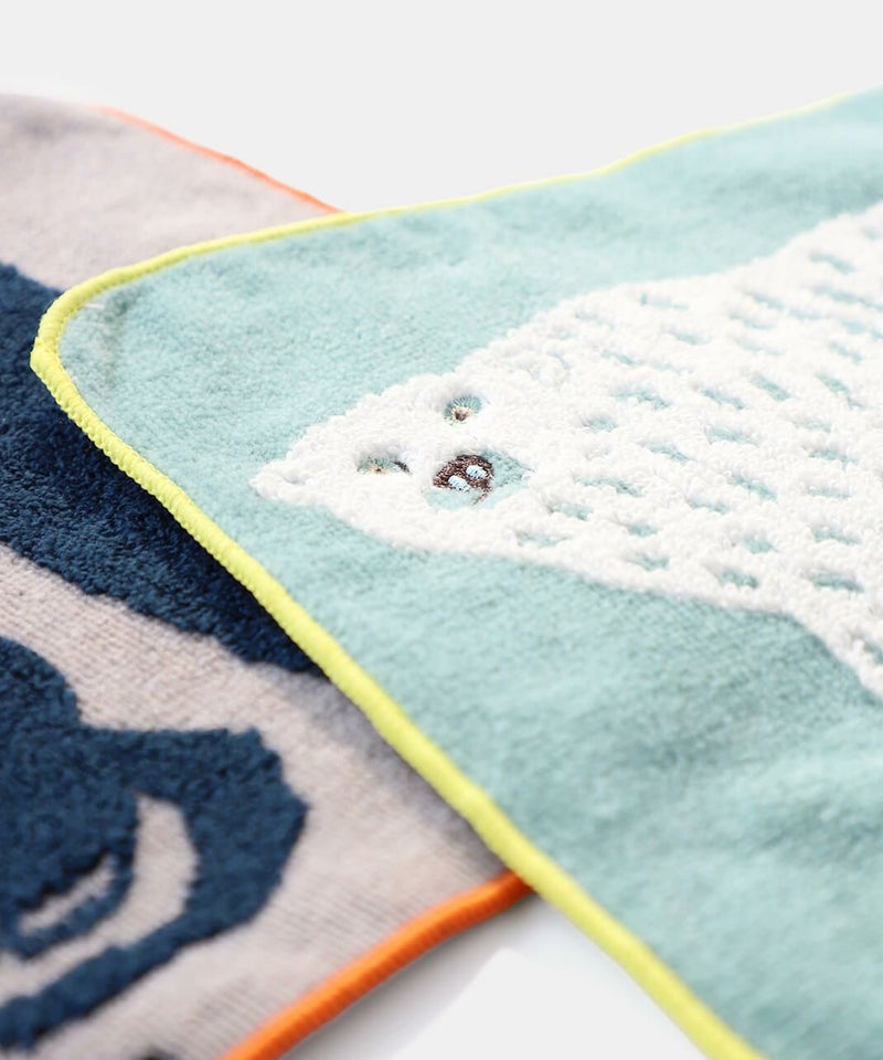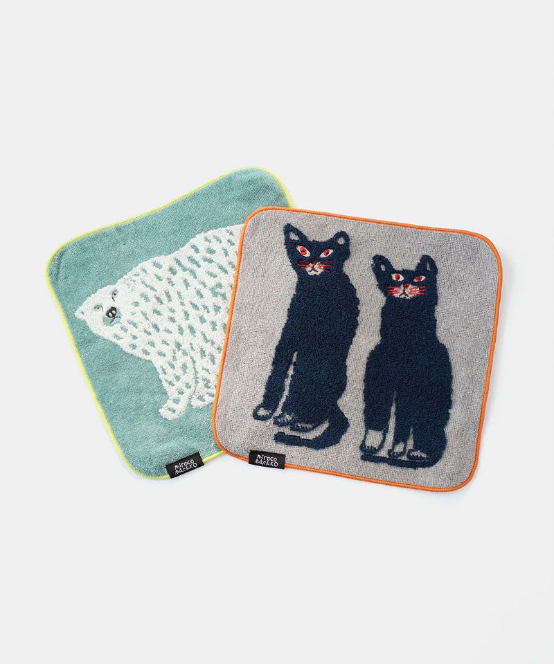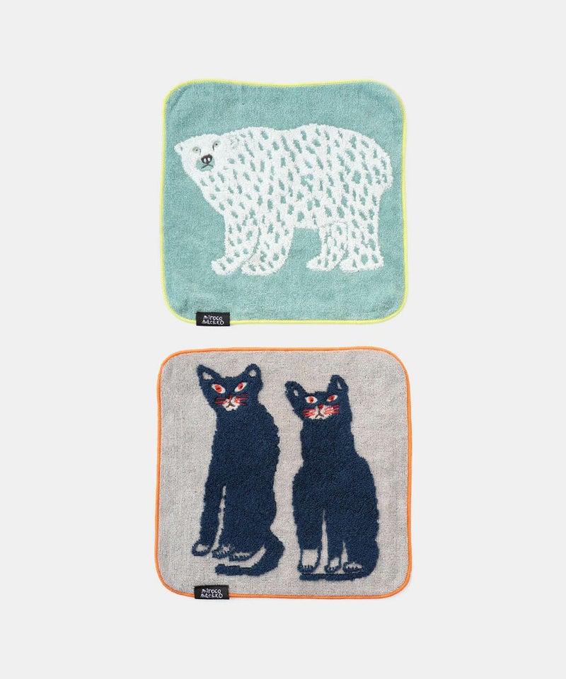 ワンポイント刺しゅうが入った、絵本作家ミロコマチコのハンドタオル。 ネコとシロクマが目を惹くハンドタオルは、普段使いはもちろんギフトにもおすすめです。