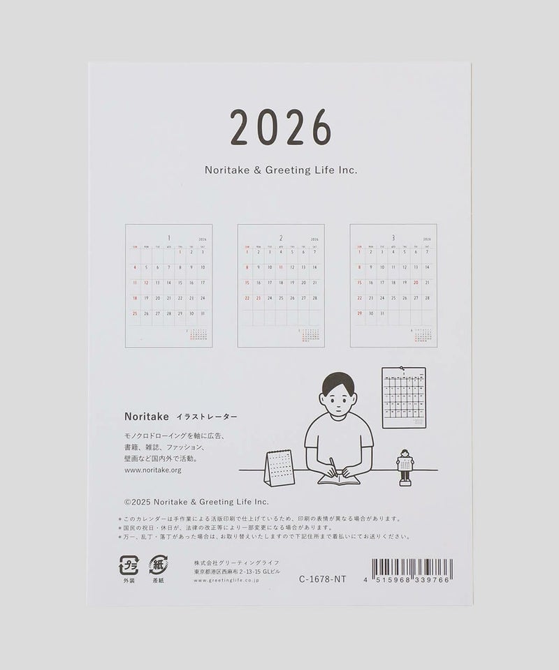 イラストレーター Notitake の文字にこだわった卓上カレンダー。 風合いのある活版印刷と丸みを帯びた文字で、シンプルでありながら無機質さを感じさせないデザインです。