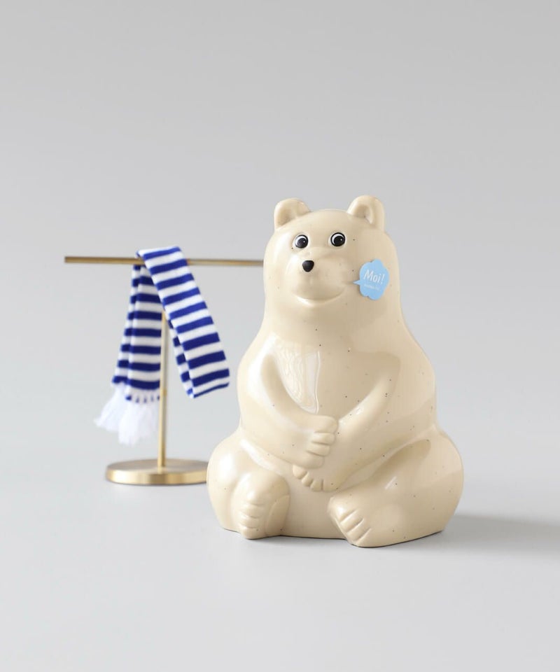 毎年人気のマフラー付きシロクマ貯金箱です。