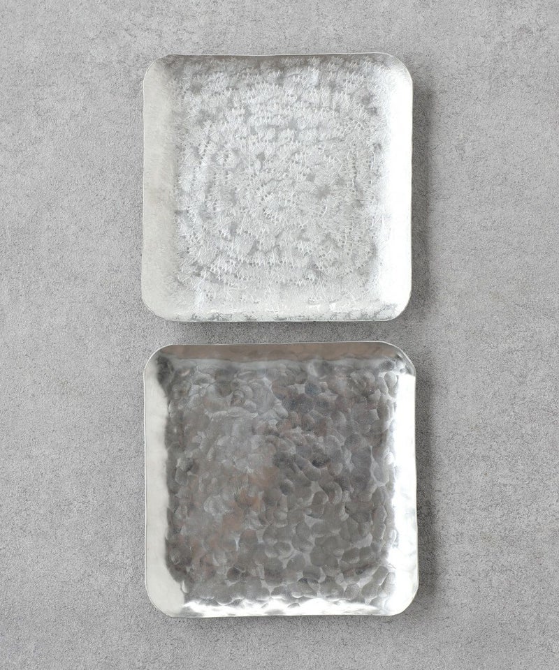 リズム良く打っていくことで平らだった金属の板が曲がり、カトラリーやプレートの形に。