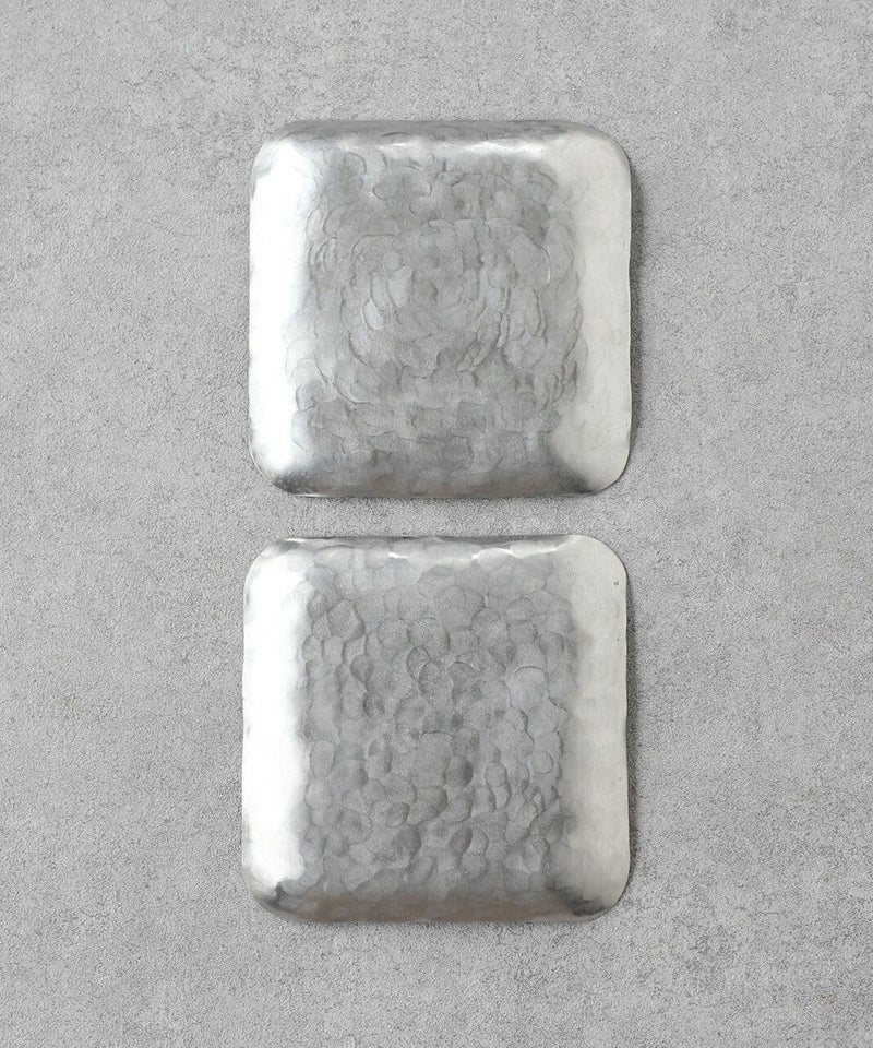 リズム良く打っていくことで平らだった金属の板が曲がり、カトラリーやプレートの形に。