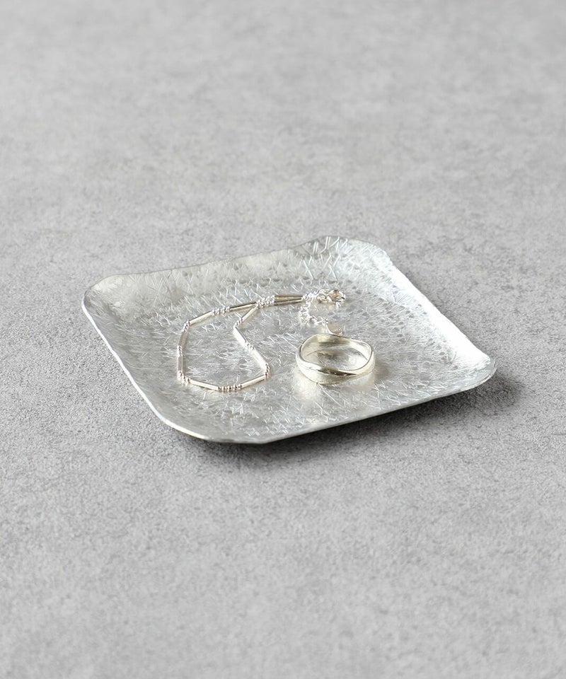 リズム良く打っていくことで平らだった金属の板が曲がり、カトラリーやプレートの形に。