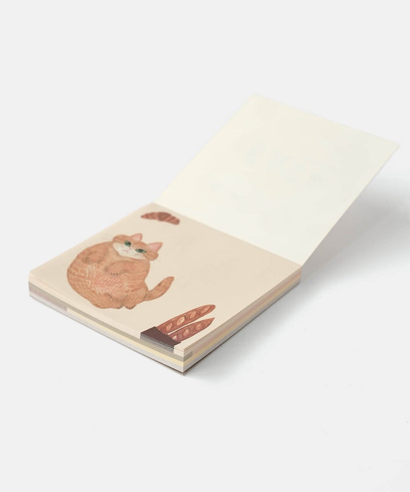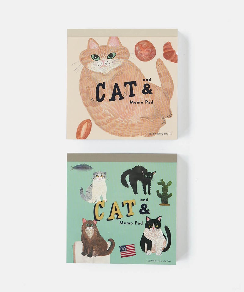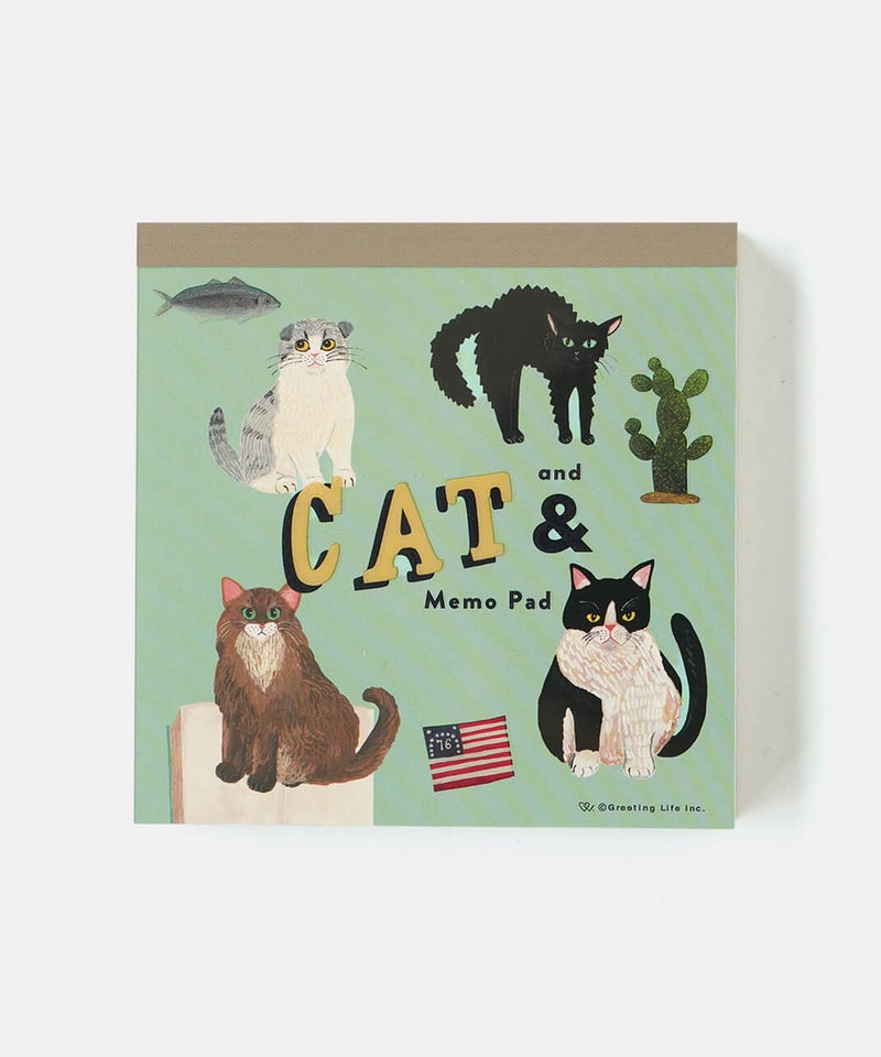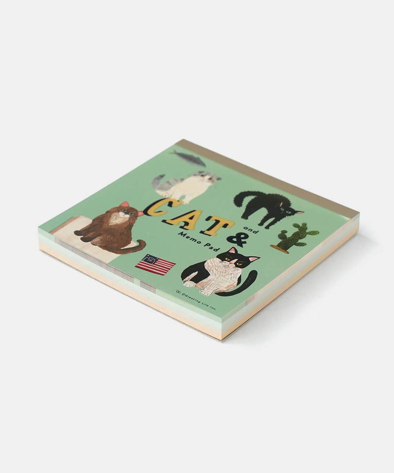 イラストレーター・そで山かほ子の“ネコと◯◯”をテーマにした『CAT&(キャットアンド)』雑貨・ステーショナリーシリーズ。環境にやさしい森林認証紙を使用したメモ。4柄入り。書き置きやお買いものメモなど、ちょっと書きたいときに便利なサイズ感。ギフトにもおすすめです。