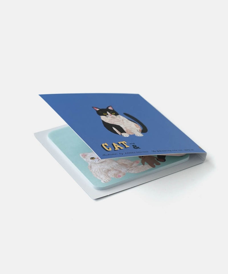 イラストレーター・そで山かほ子の“ネコと◯◯”をテーマにした『CAT&(キャットアンド)』雑貨・ステーショナリーシリーズ。大小4柄のデザインが入ったふせんセット。4柄各20枚(計80枚)入り。ふせんが傷むのを防いで、持ち運びにも便利なブック型台紙付き。世界観がつまった絵本のようなかわいらしさで、ギフトにもおすすめです。
