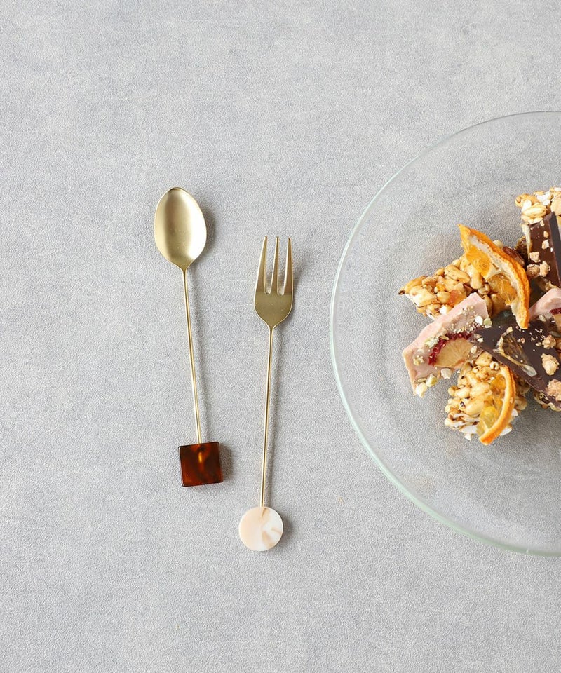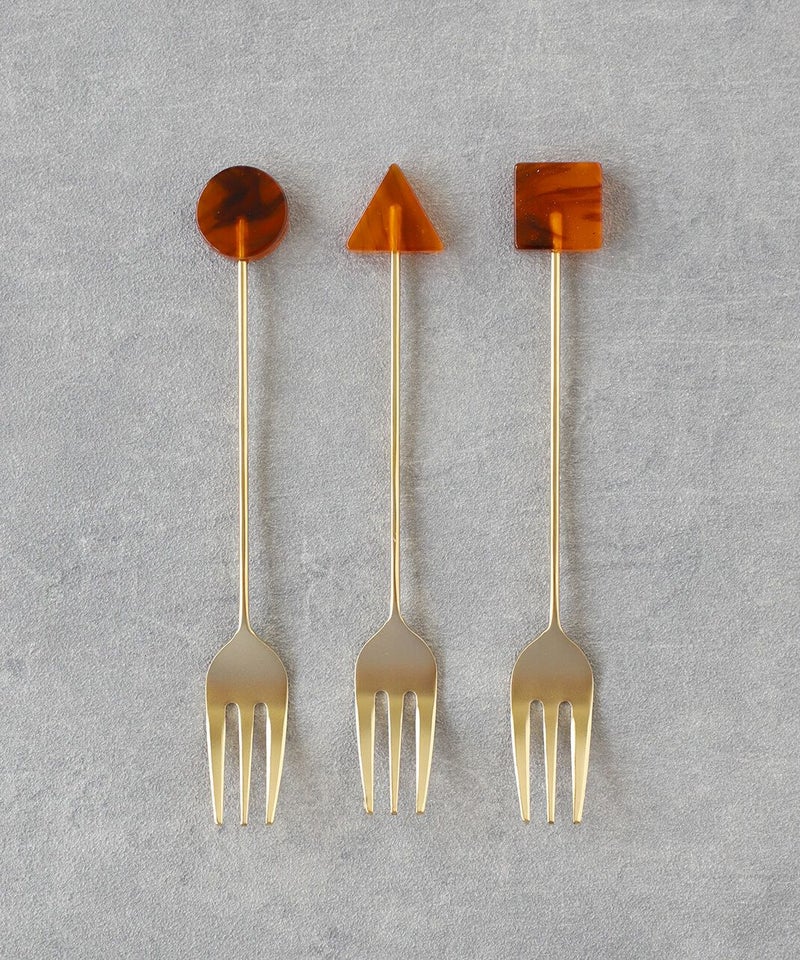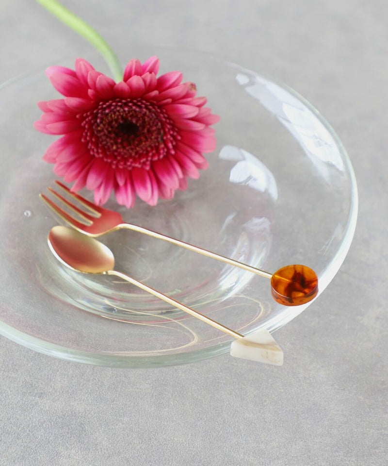 幾何学モチーフのアクリルパーツが特徴のカトラリーです。