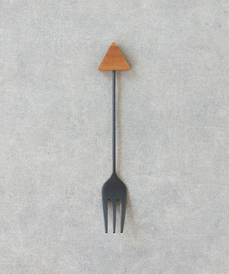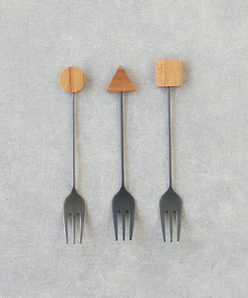 幾何学モチーフの木製パーツがアクセントのカトラリーです。