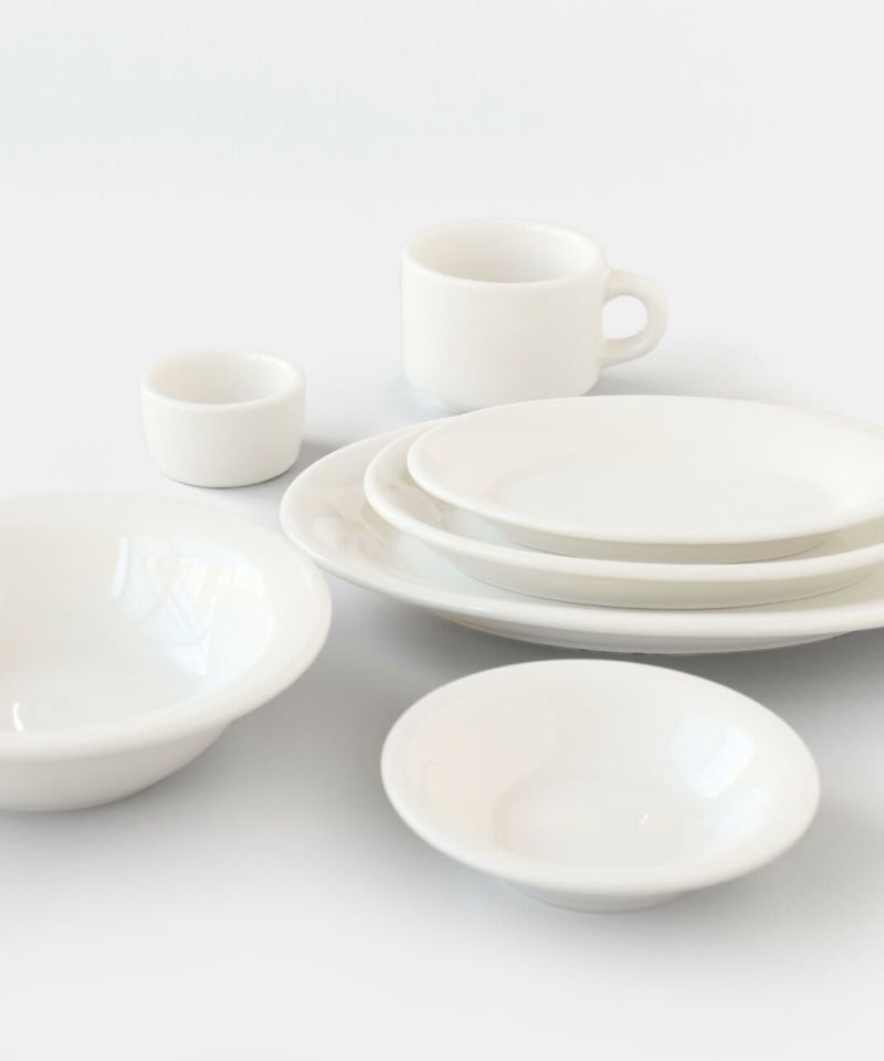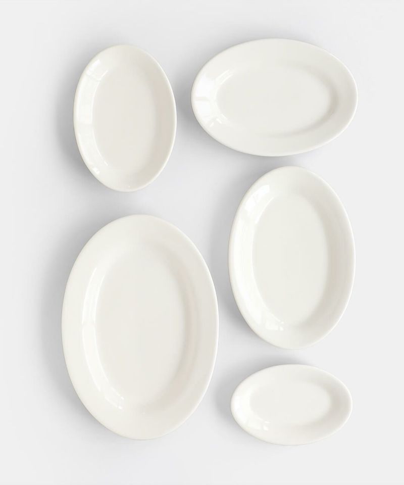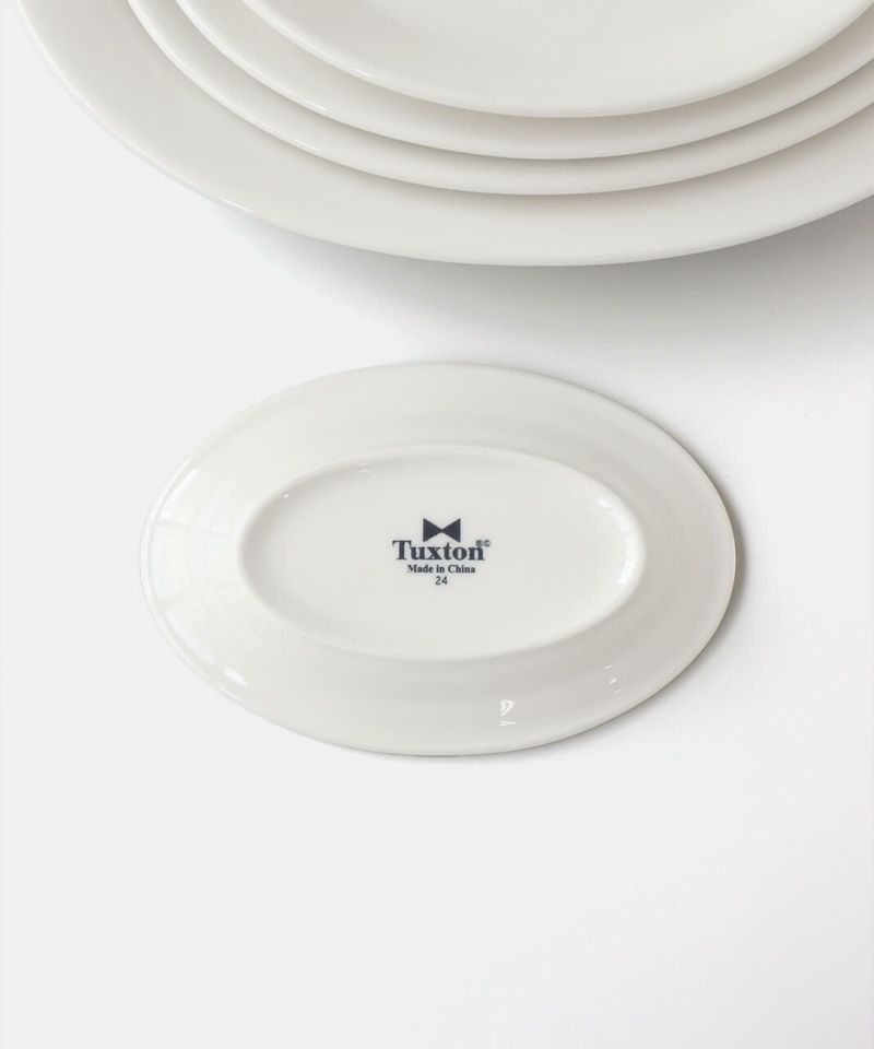 Tuxton 「Eggshell」シリーズのオーバルプレート。少し深さがある形なので、さっと盛り付けるだけで様になります。計5サイズ展開で、用途に合わせて最適のサイズを選べるのもポイント。大きめのプレートは、メイン料理用にはもちろん、大皿料理の盛り付けにも使えるサイズ感。小さめのプレートは、前菜やパンをのせたり、取り皿にもぴったり。ラインナップも豊富なので、いくつか揃えておくのもおすすめです。普段使いからおもてなしの時までシーンを問わずに活躍してくれます。
