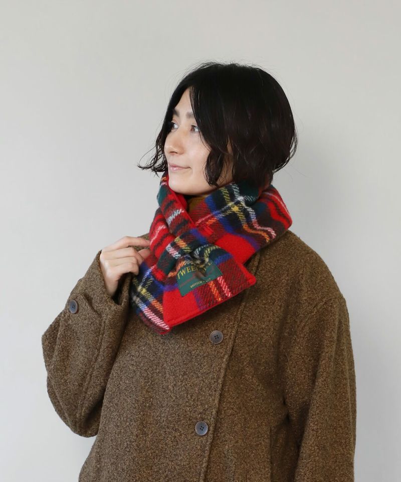 TWEEDMILLのチェックのマフラー、裏地にはフリースを使い肌触りが心地よいコンビです。 イギリスの老舗メーカーによるウールチェック生地は王道で、温かみのある風合いです。 コンパクトなサイズで使いやすく、ウールと裏地のフリースが首元をあたためてくれて、本格的な冬にも大活躍します。 落ち着いた上品なチェック柄は、ギフトにもおすすめです。