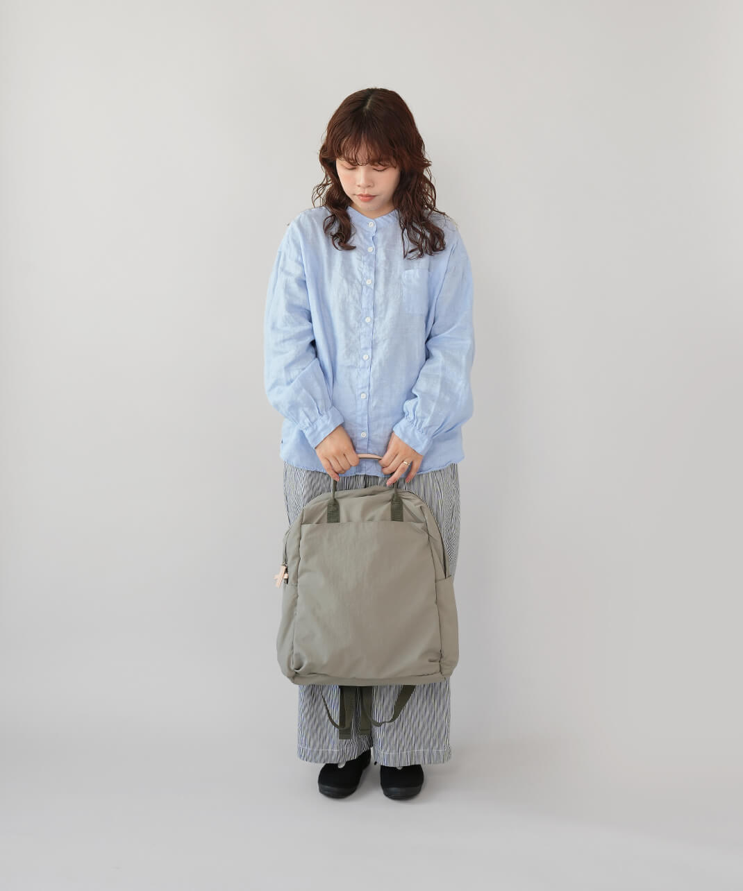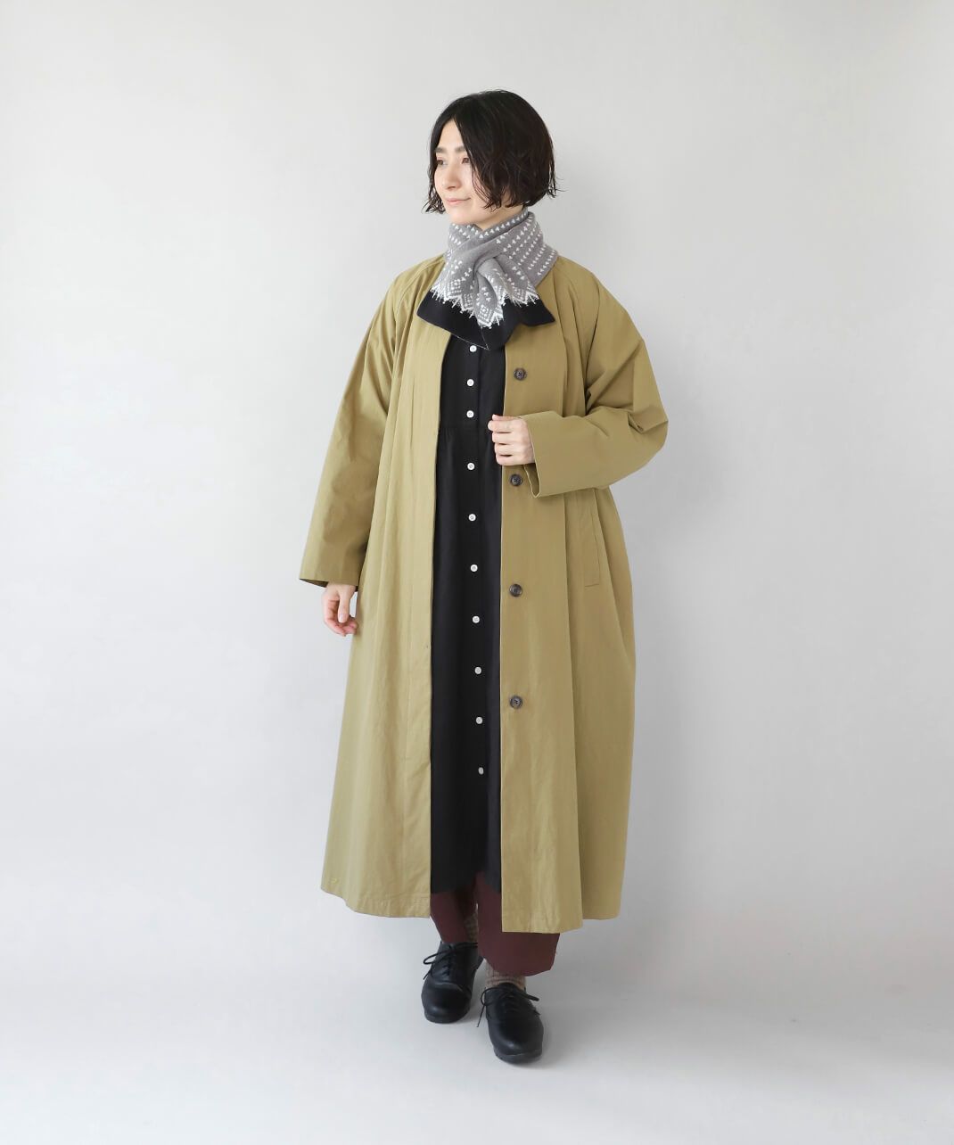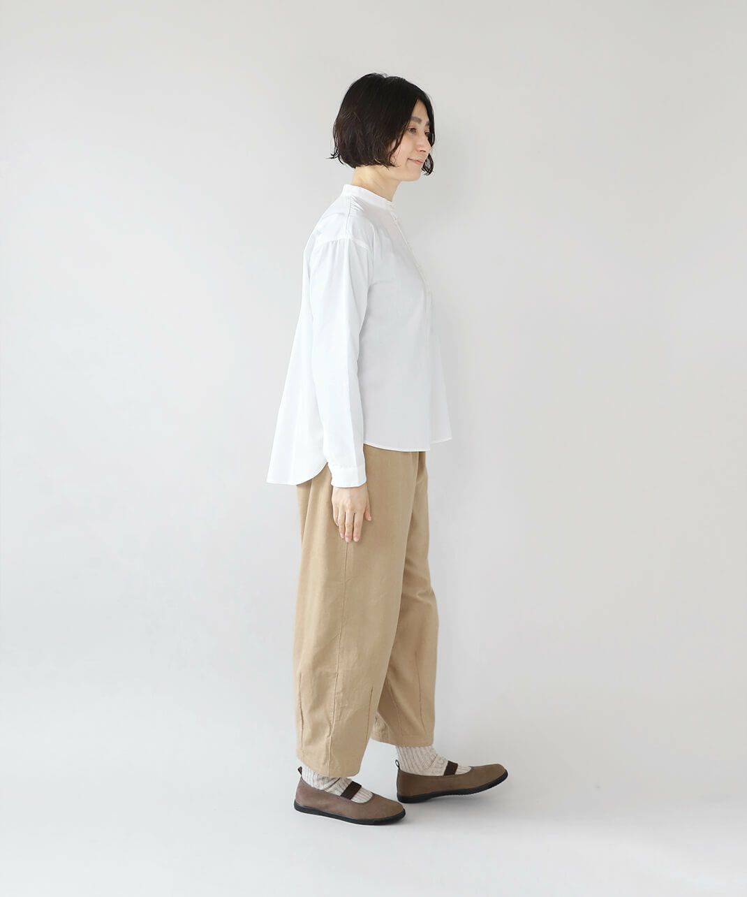 バンドカラー長袖シャツ