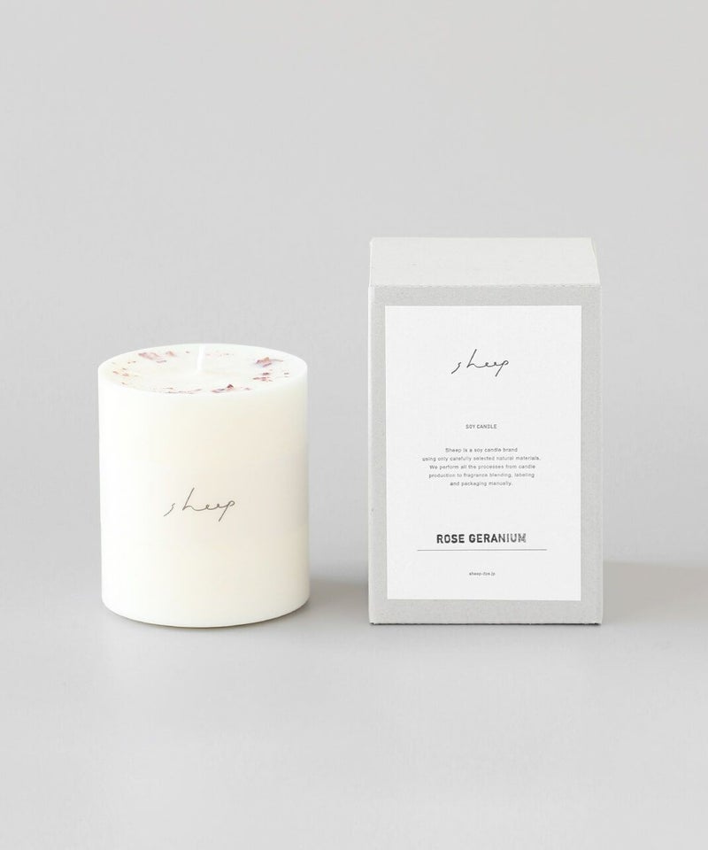 ゼラニウムとヒノキの精油でほんのりとした香りがついています。バラのような華やかな香り。ローズレッドのハーブティーをトッピング。