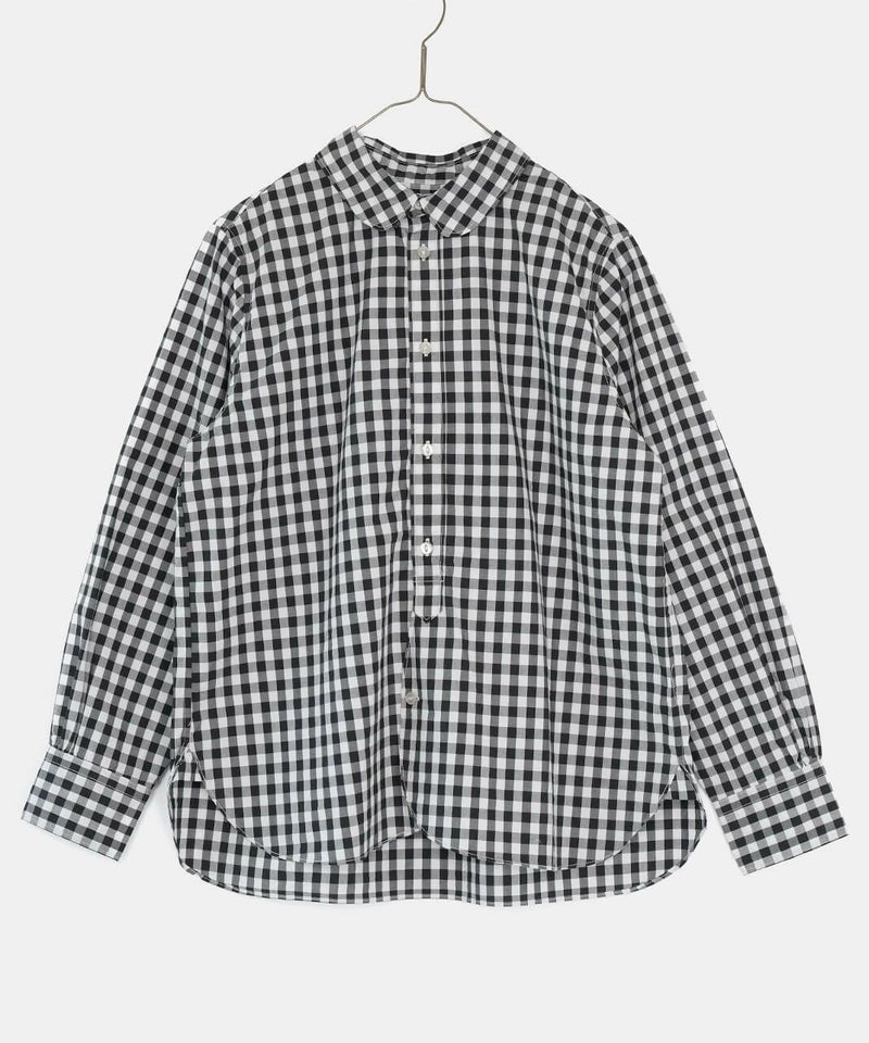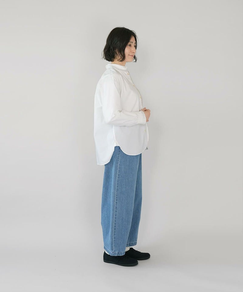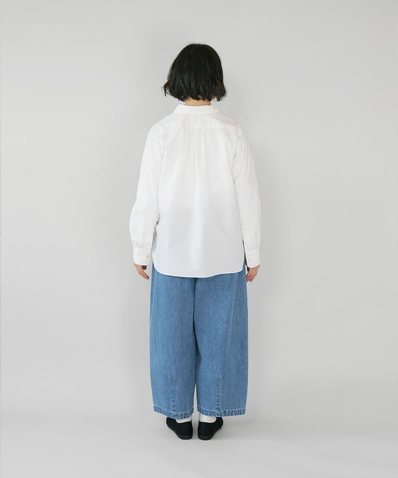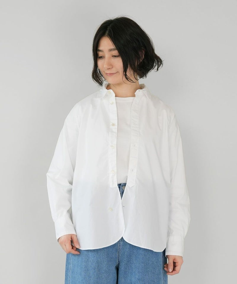 コットン素材で高密度に織られたタイプライター生地を使用した丸襟ブラウスです。