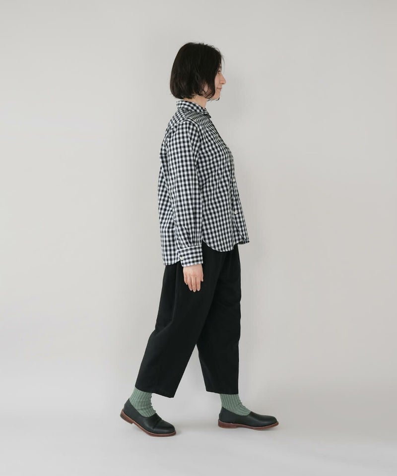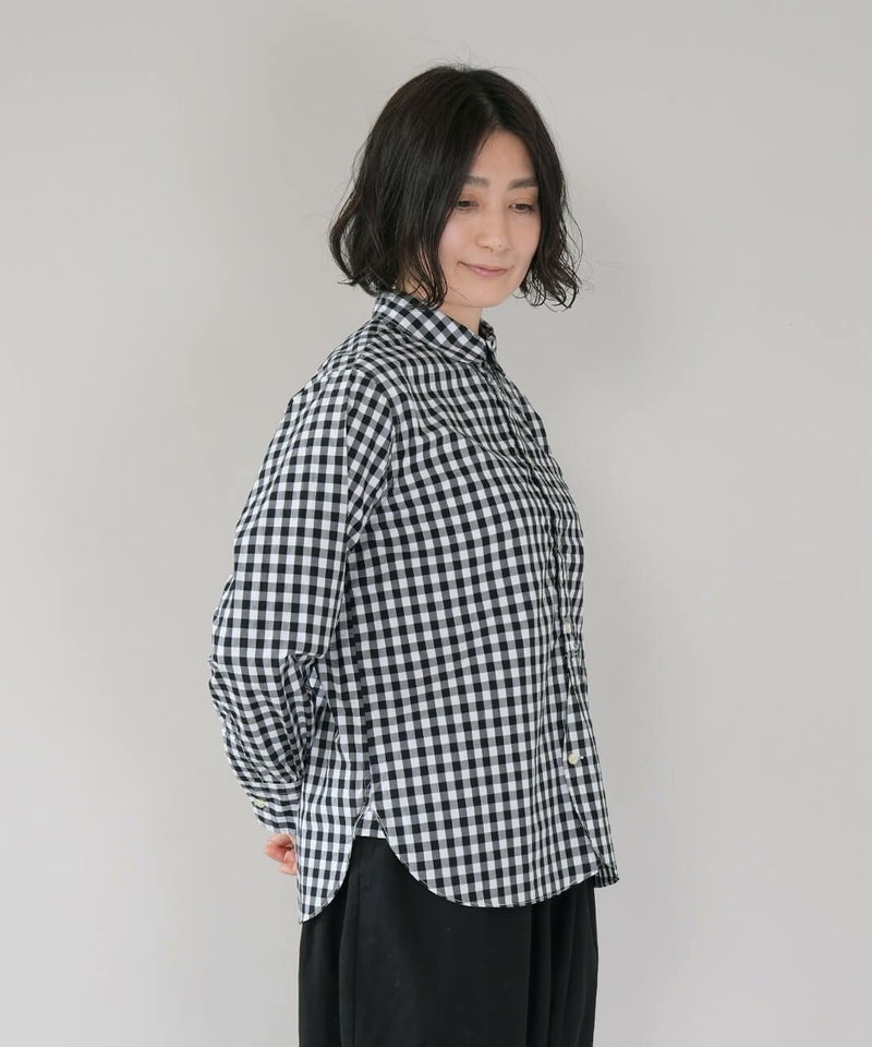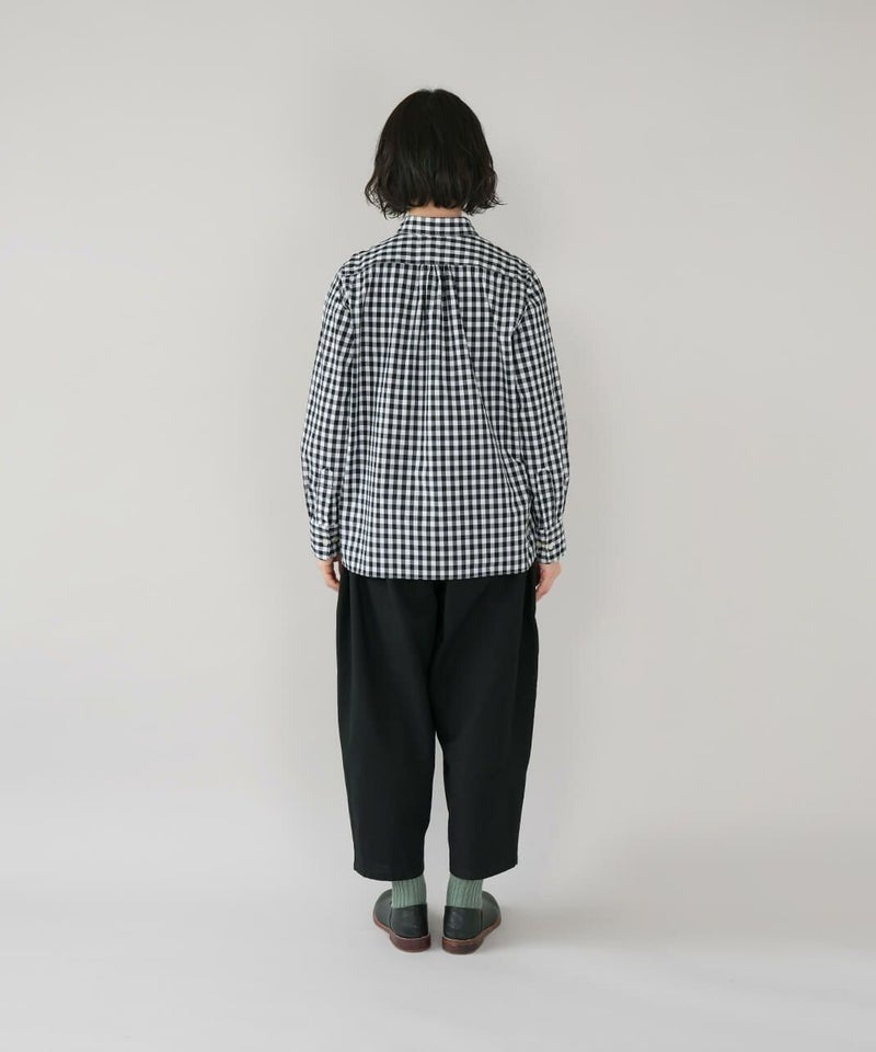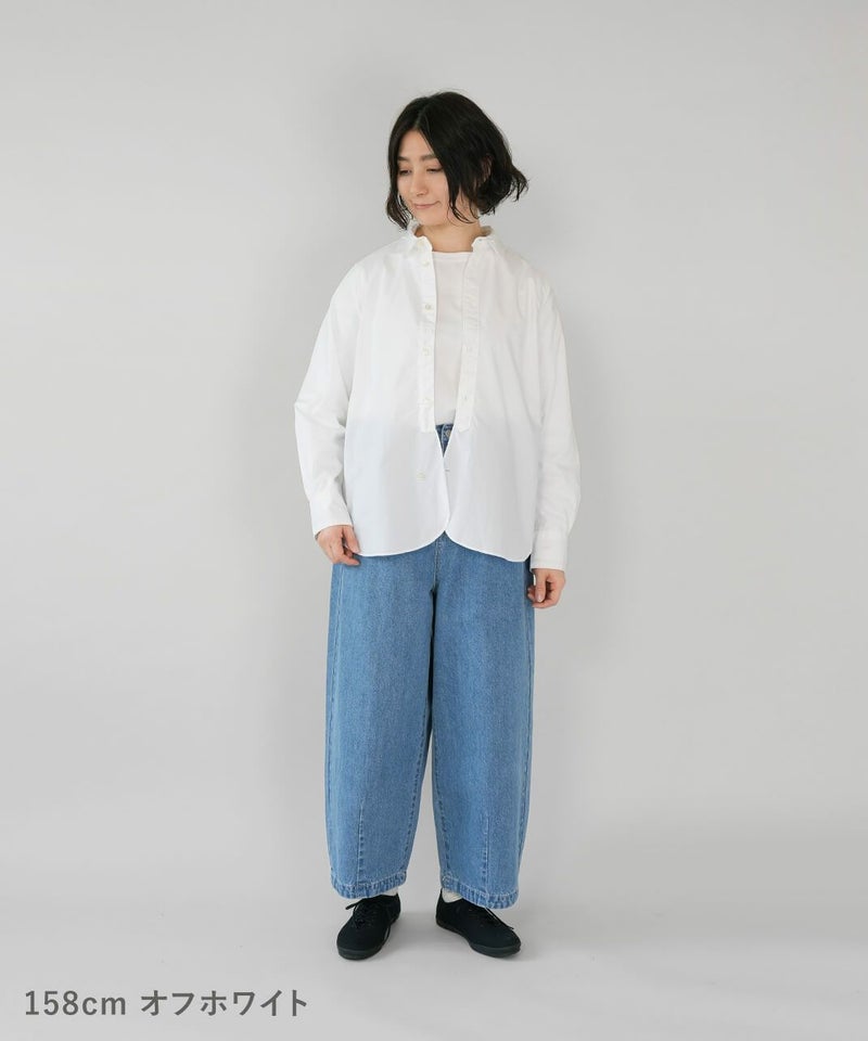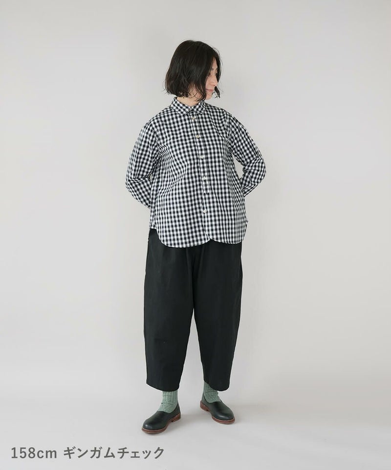 コットン素材で高密度に織られたタイプライター生地を使用した丸襟ブラウスです。