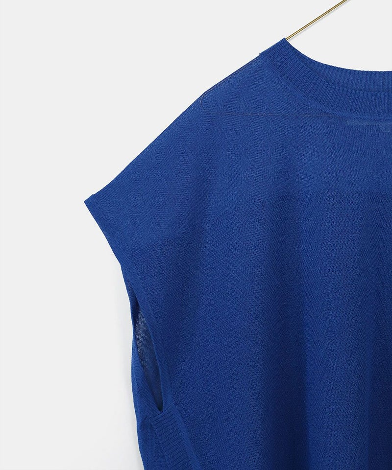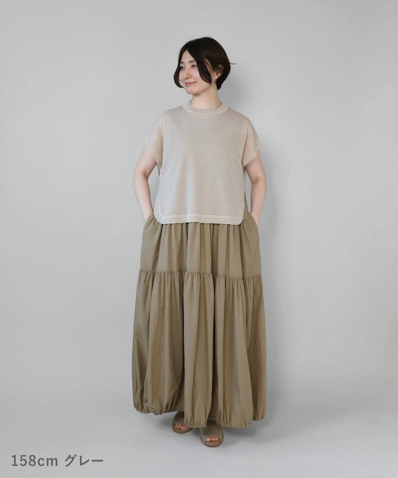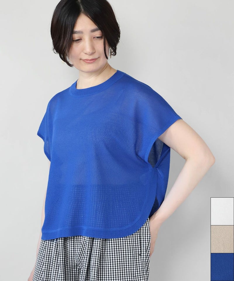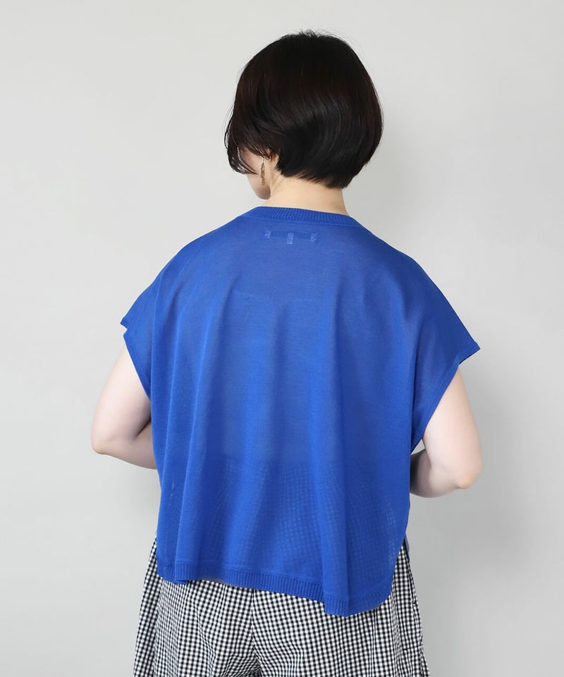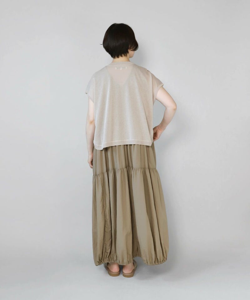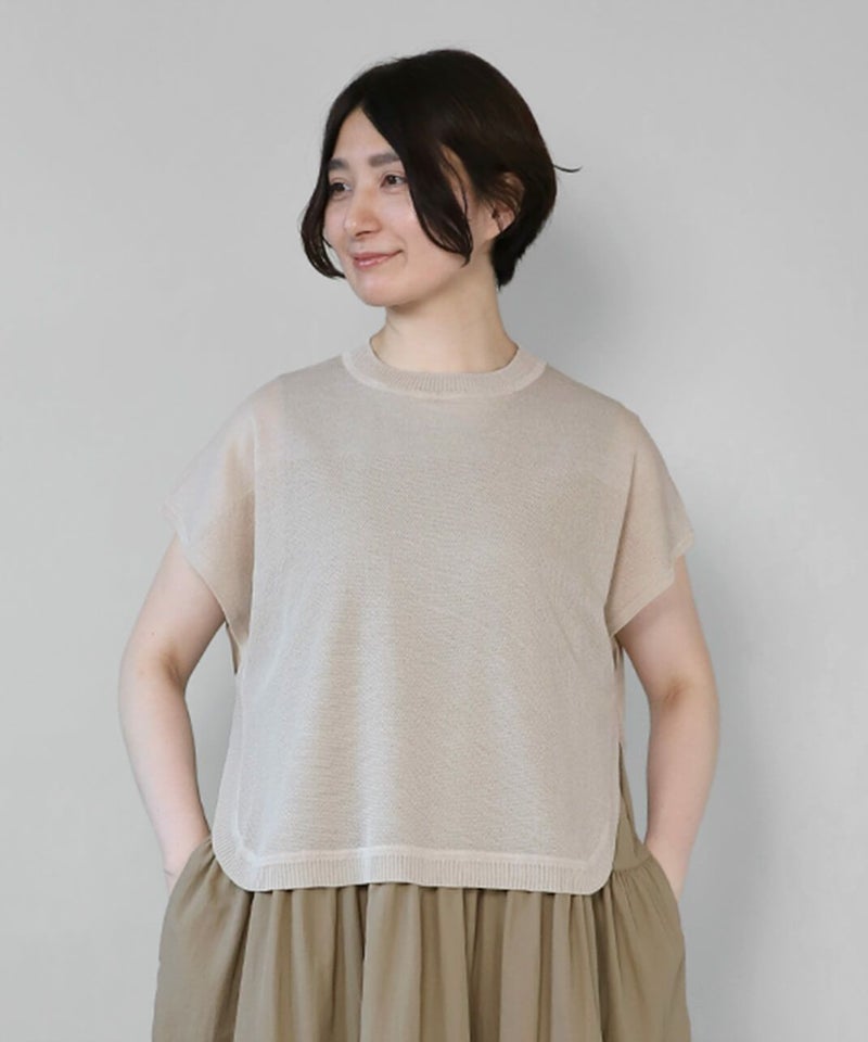 レーヨンとポリエステルのさらりとドライな質感で清涼感のあるベストです。 シアー素材でゆとりのあるサイズ感は、コーディネートが楽しめます。短めの丈と裾のラウンドはワンピースやチュニックとの相性が抜群です。もちろんタンクトップやTシャツにも良く合います。 いつものスタイルにプラスすれば、雰囲気を変えてくれるおすすめの1着です。