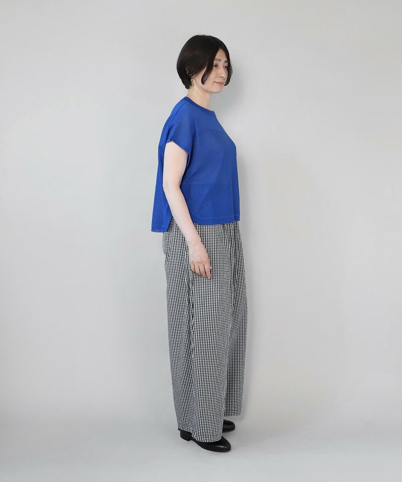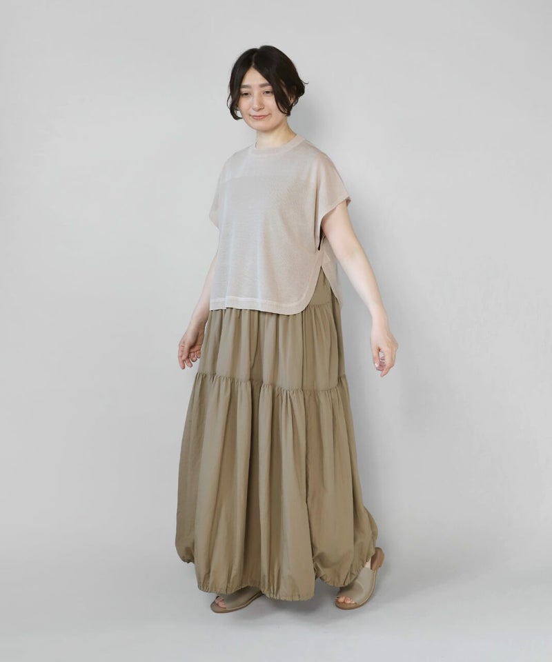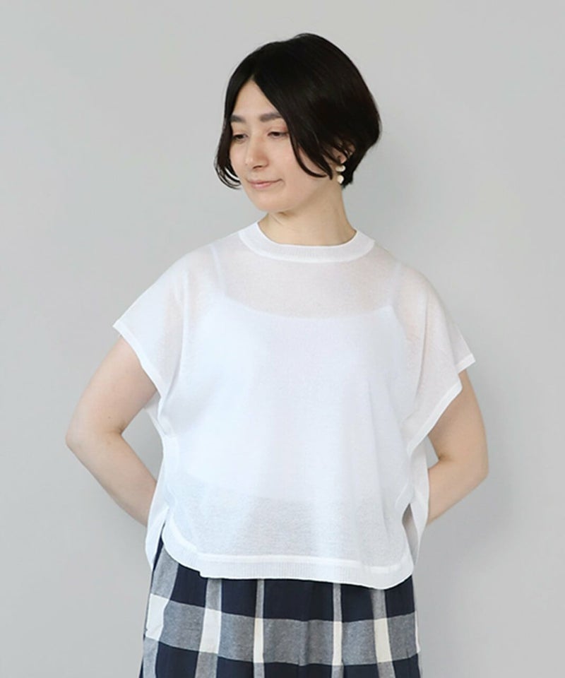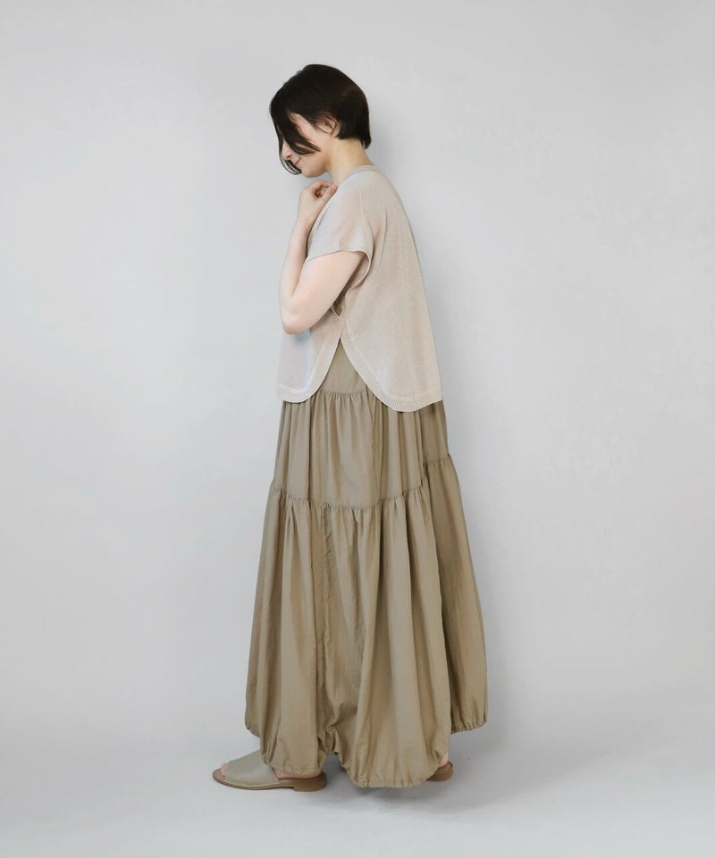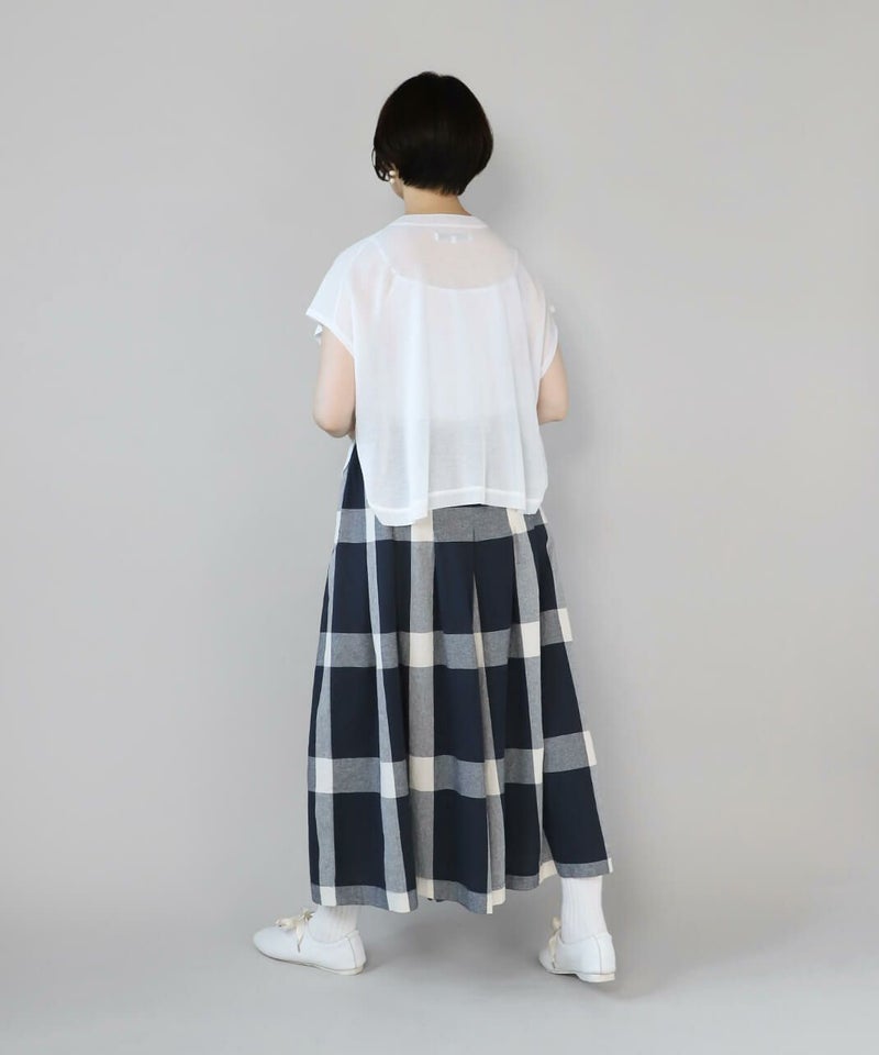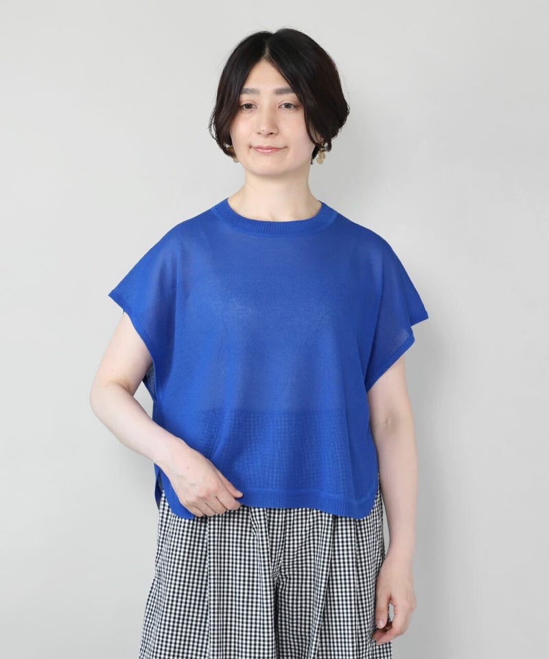 レーヨンとポリエステルのさらりとドライな質感で清涼感のあるベストです。 シアー素材でゆとりのあるサイズ感は、コーディネートが楽しめます。短めの丈と裾のラウンドはワンピースやチュニックとの相性が抜群です。もちろんタンクトップやTシャツにも良く合います。 いつものスタイルにプラスすれば、雰囲気を変えてくれるおすすめの1着です。