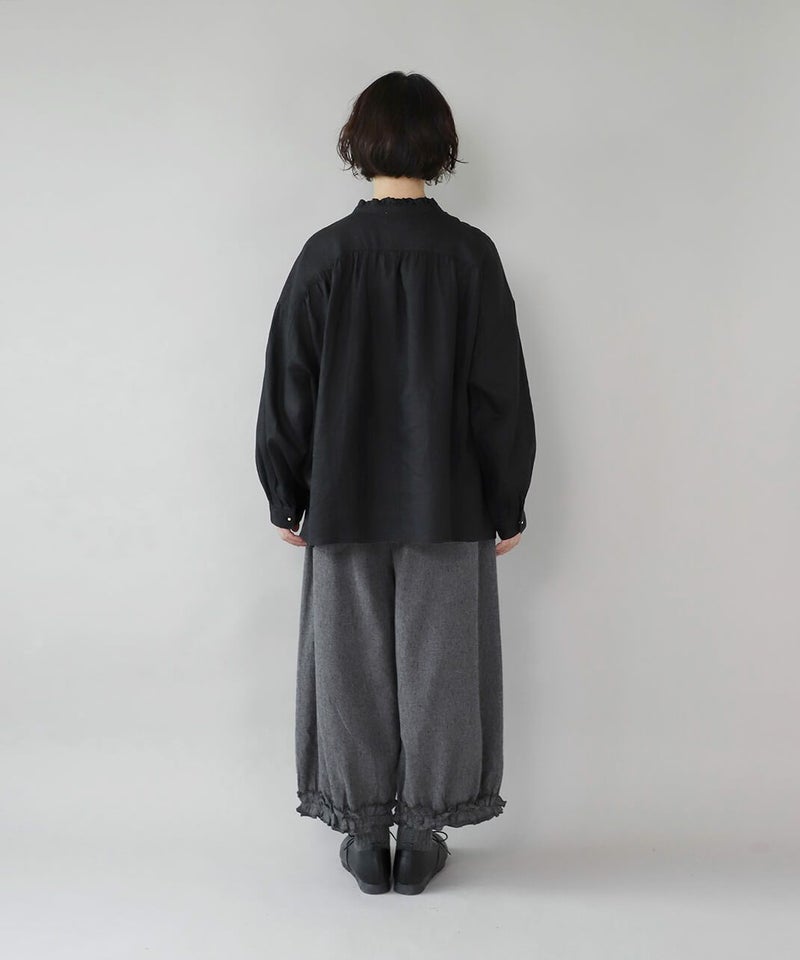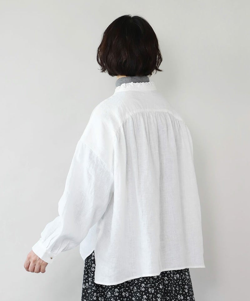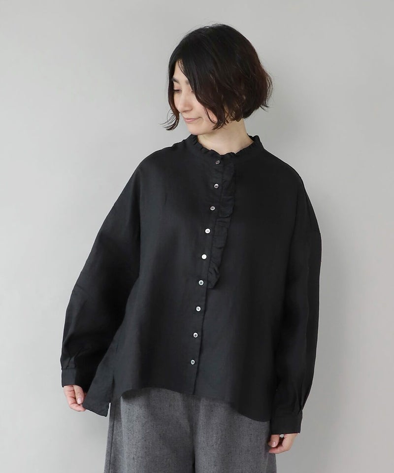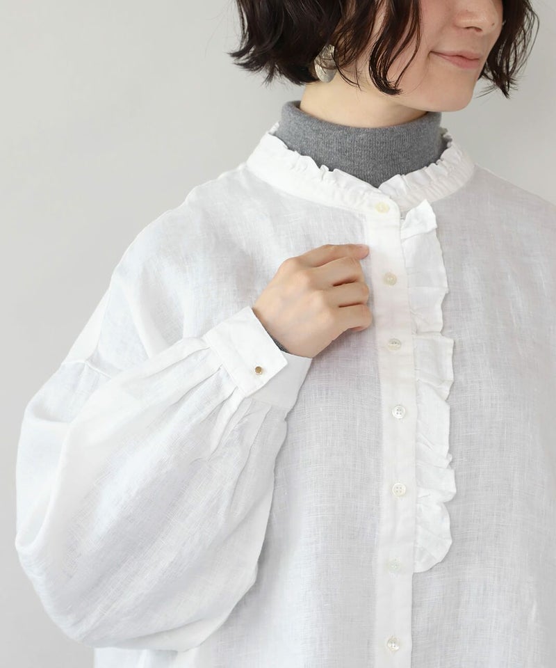 落ち感のあるリネン生地を使用したワイドフリルブラウスです。