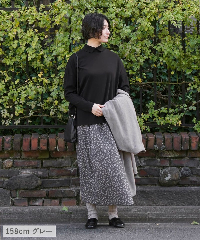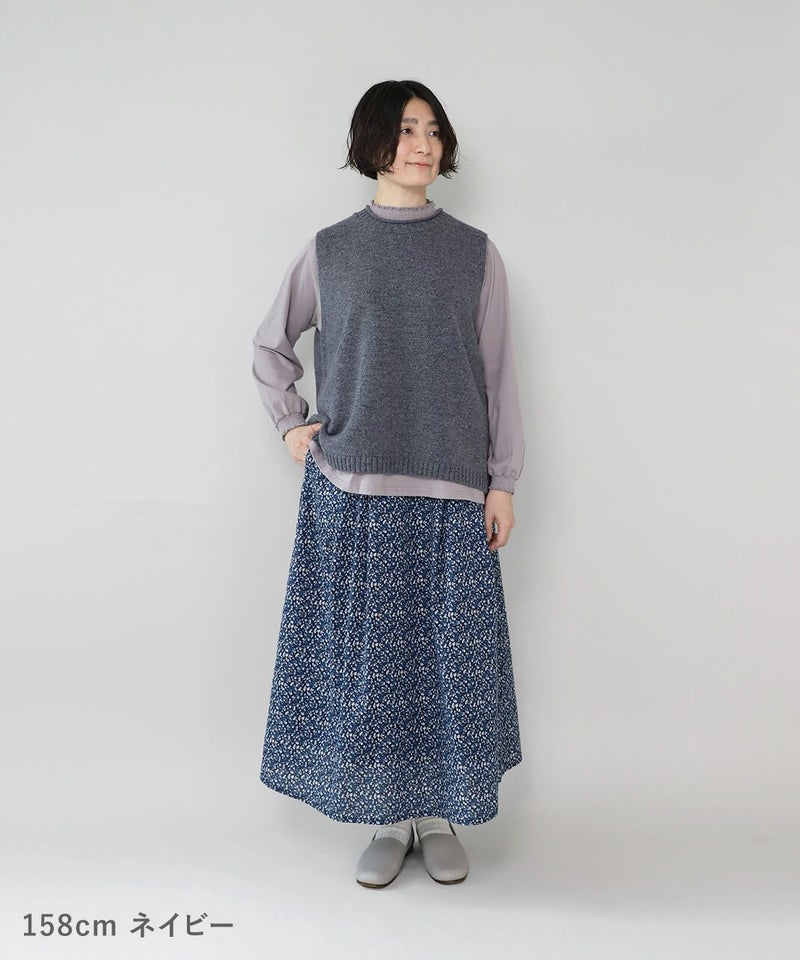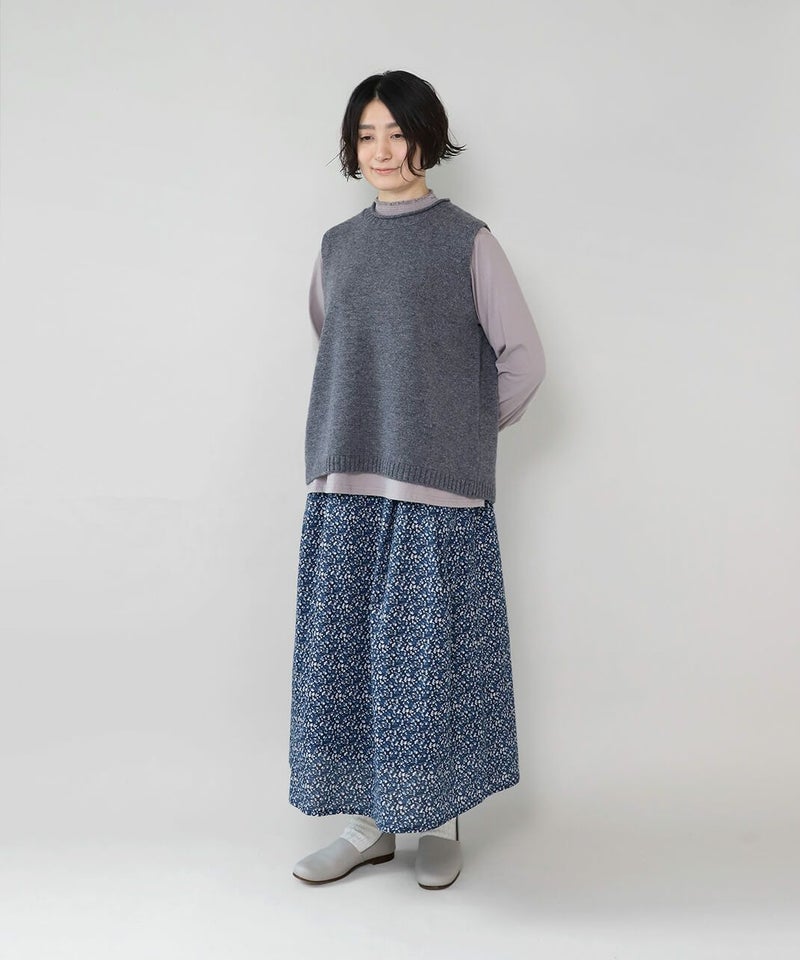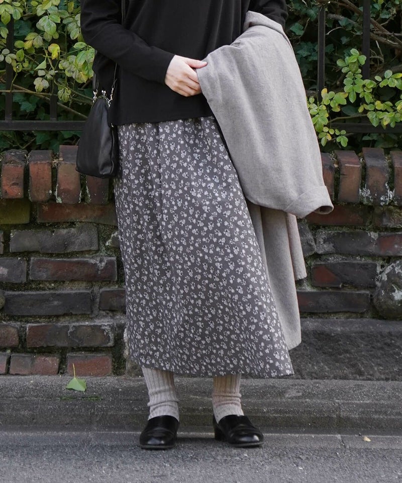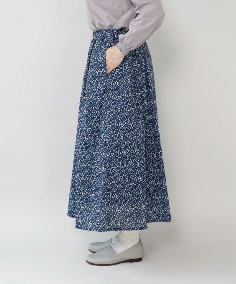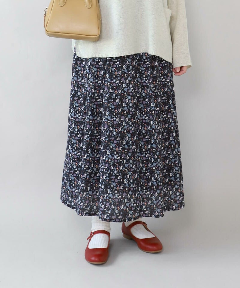 さらりとした薄手のコットンローン生地を使用した花柄のスカートです。 裾に向けてほどよく広がるフレアシルエット。細やかなフワラープリントが上品でフェミニンな印象を演出してくれます。ウエストはすべてゴム仕様で内紐つきのためジャストサイズで着用可能。ポリエルテルの裏地付きのため張り付きにくく透け感がおさえられています。スウェットなどを合わせてカジュアルに着こなすのもおすすめです。