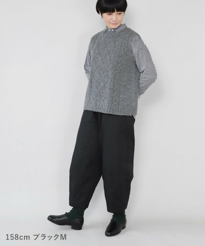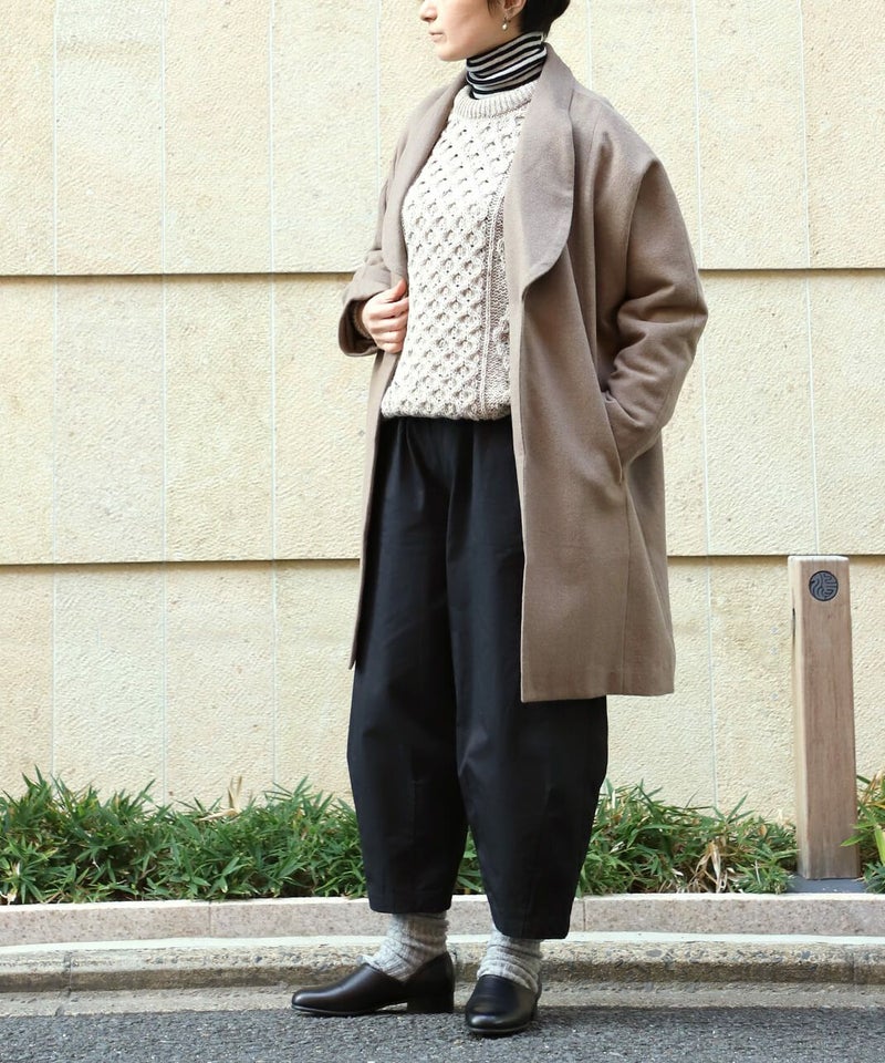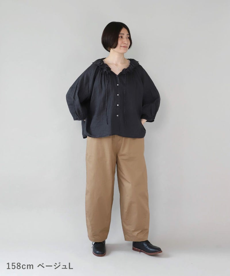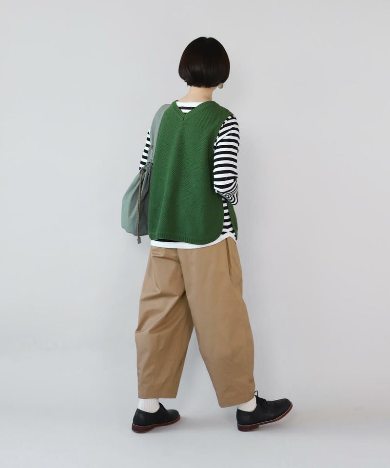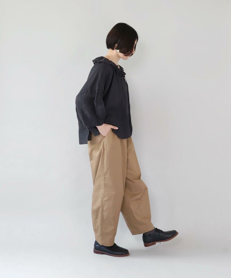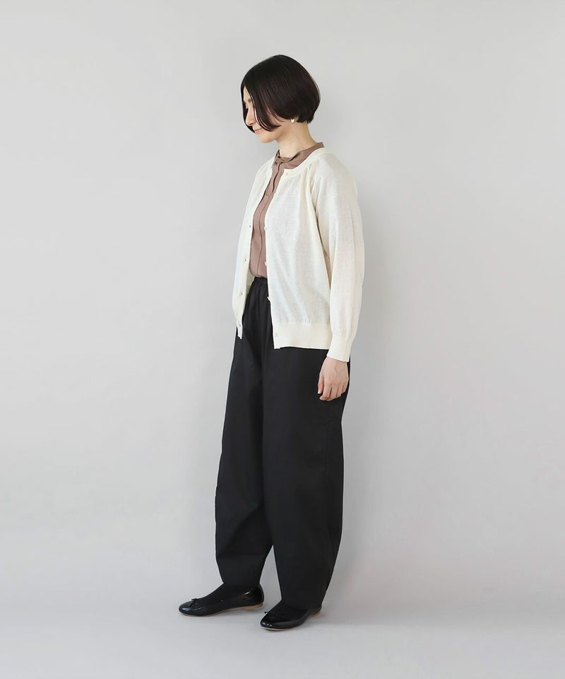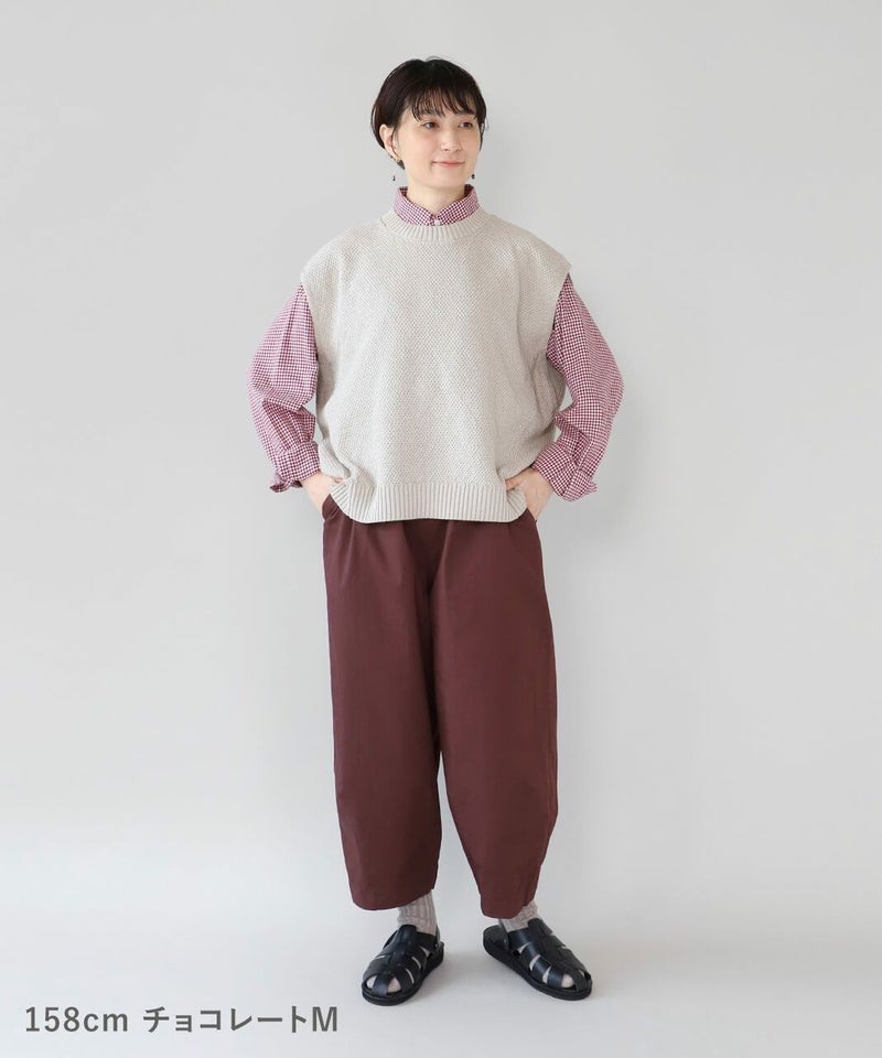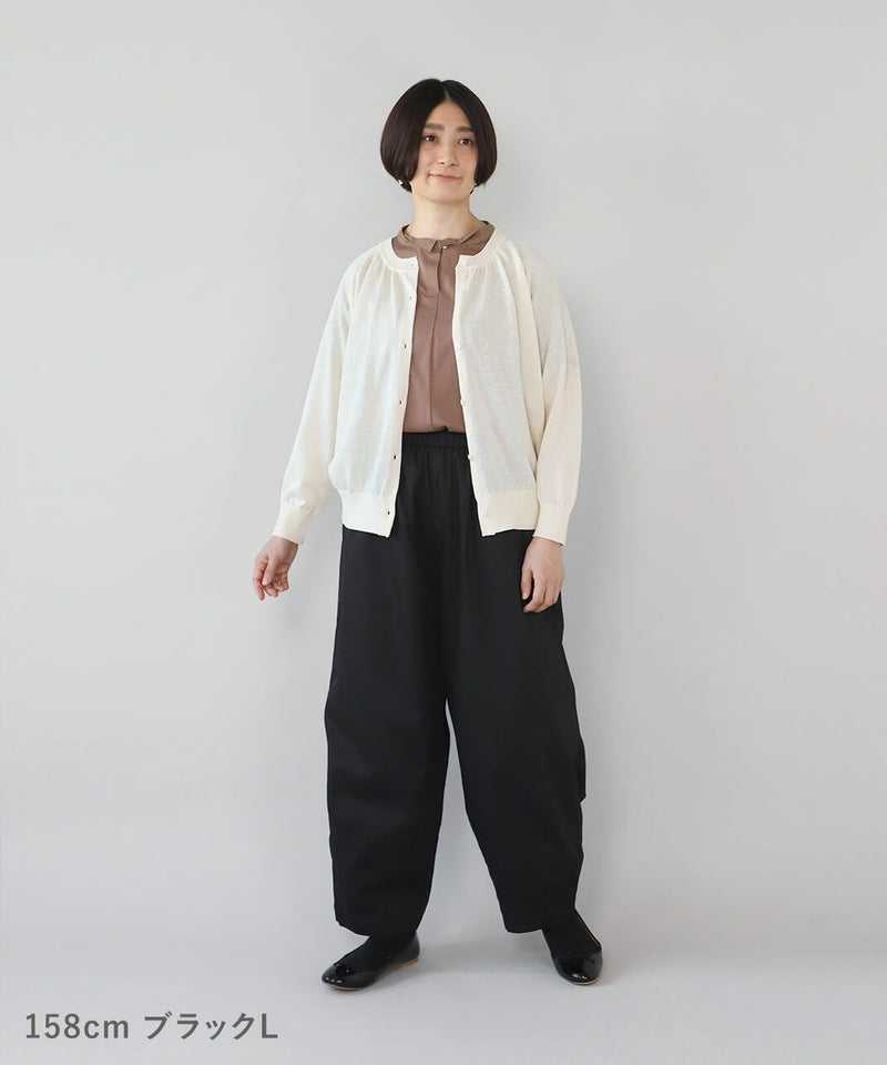 生地には年中着まわせるコットン素材を使用。ゆったりとした履き心地で、裏地付きが嬉しいポイント。通年着回せる1着です。