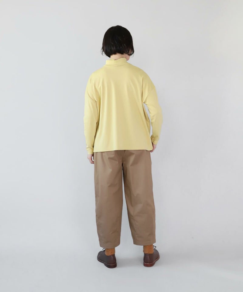 長さは足をすっきりと見せる為、裾から足首が出る丈にしました。股上が深いデザインなので、ウエスト位置次第で足首の露出を減らすことも出来ます。