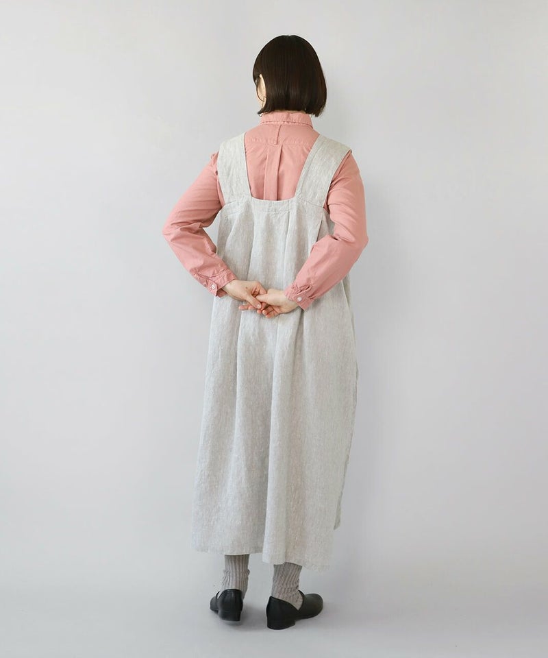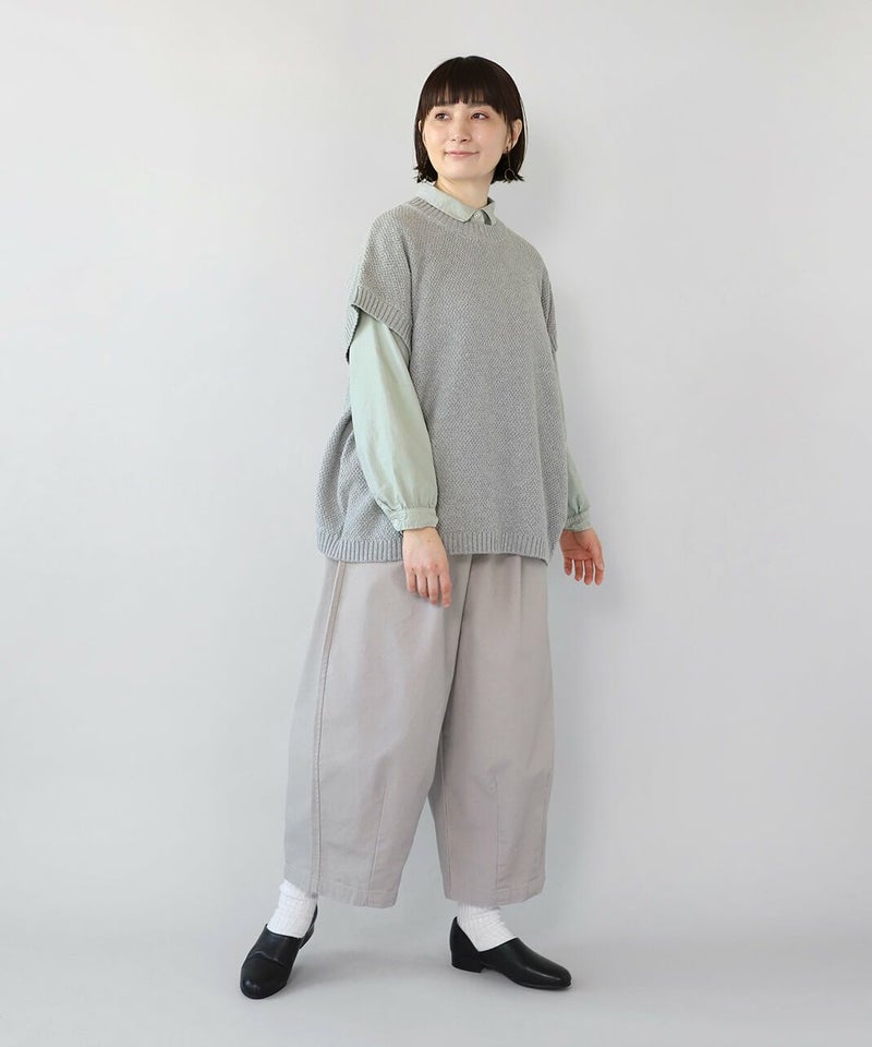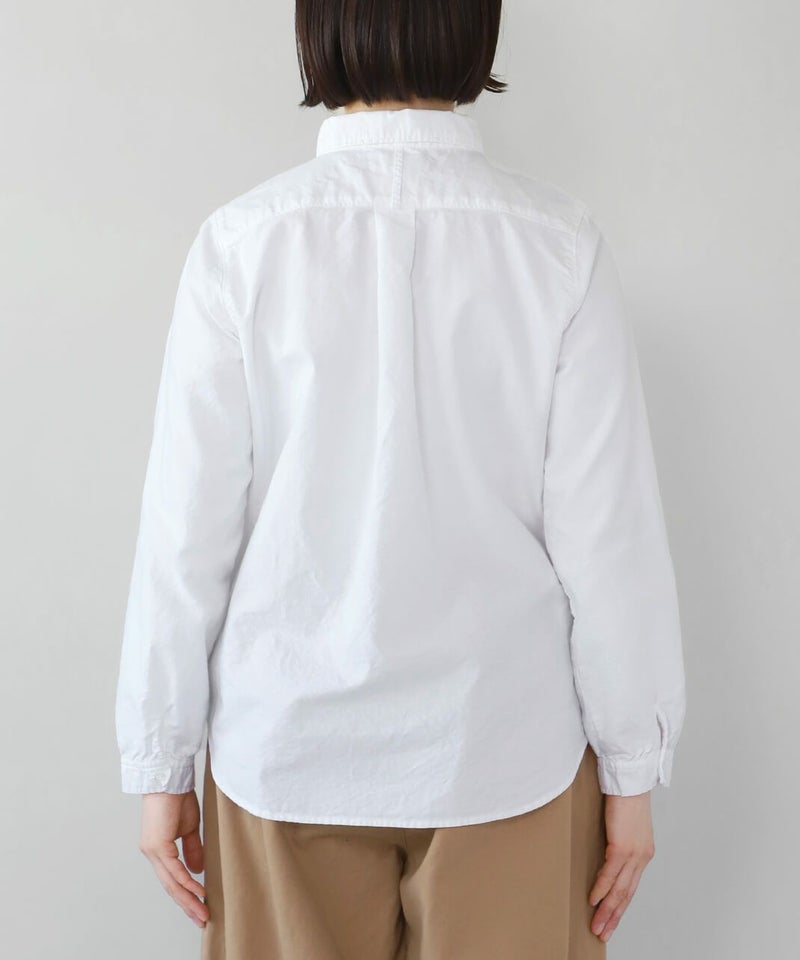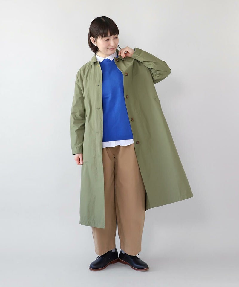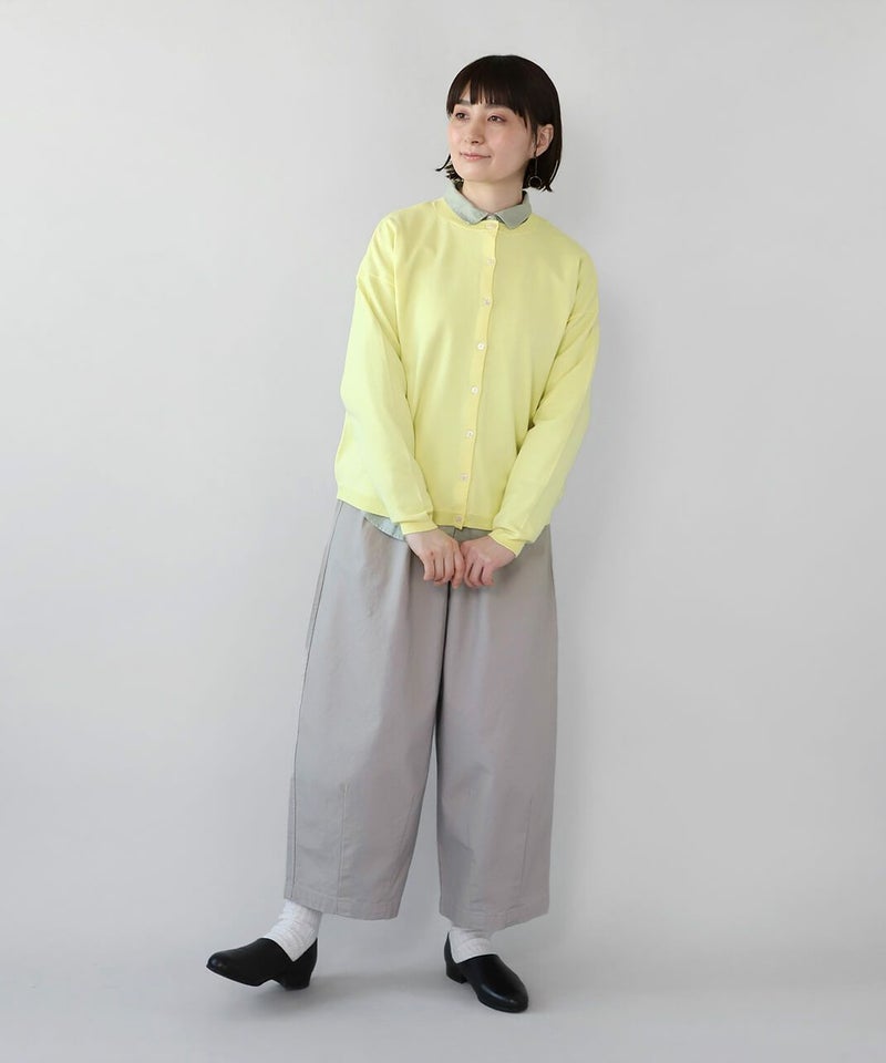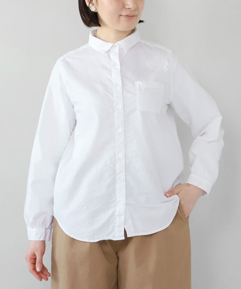 小ぶりな襟が可愛らしく、胸元のミニポケットがアクセントになったデザインです。コンパクトなサイズで清潔感があり、ワークシーンでの着用にもおすすめ。春先はベストとの重ね着を楽しんで下さい。