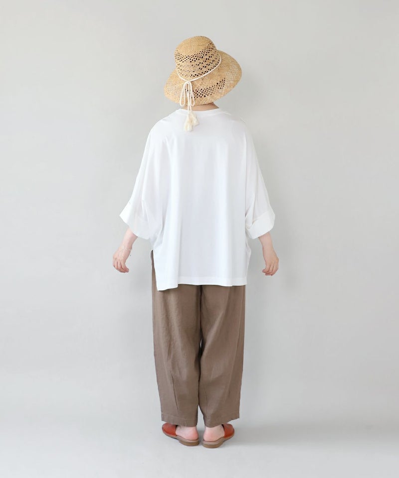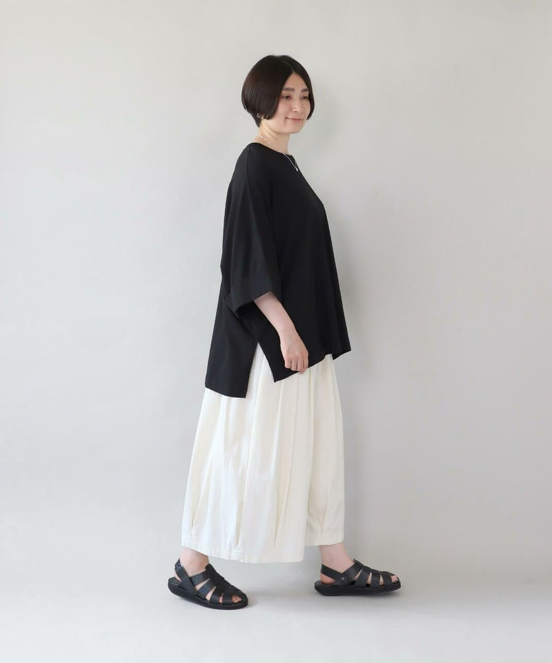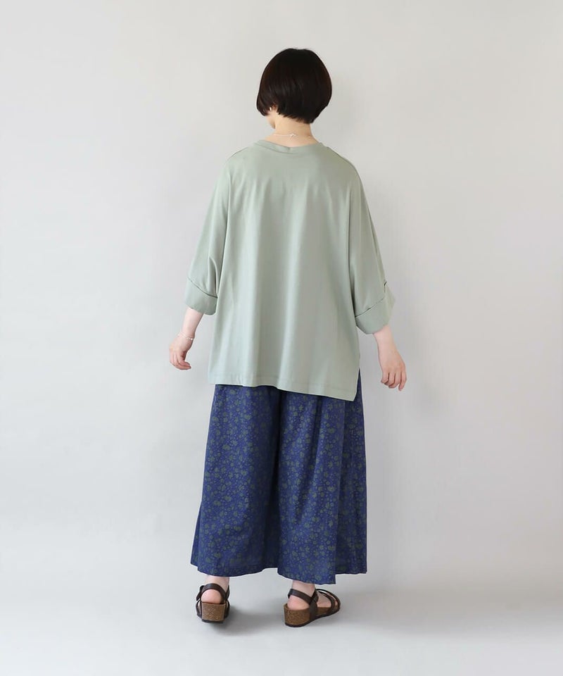 袖丈は長めに設計されており、気になる二の腕も自然にカバー。 さらに、袖先はさりげない折り返しデザインで、落ち感のあるシルエットが華奢見えを叶えてくれます。