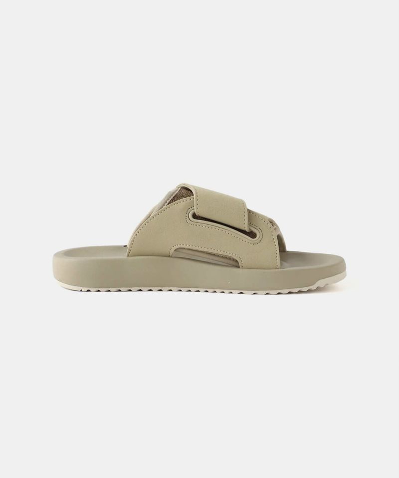 ユニバーサルデザインの心地良さをデイリーユースに。スポサンよりも気軽でスライドよりもフィッティングに優れた仕様。 フッドヘッドの素材を反発力の高い配合に改良しコンフォート性を向上。 履く人に合わせた位置でベルトを固定できる簡潔な構造のサンダルタイプ。