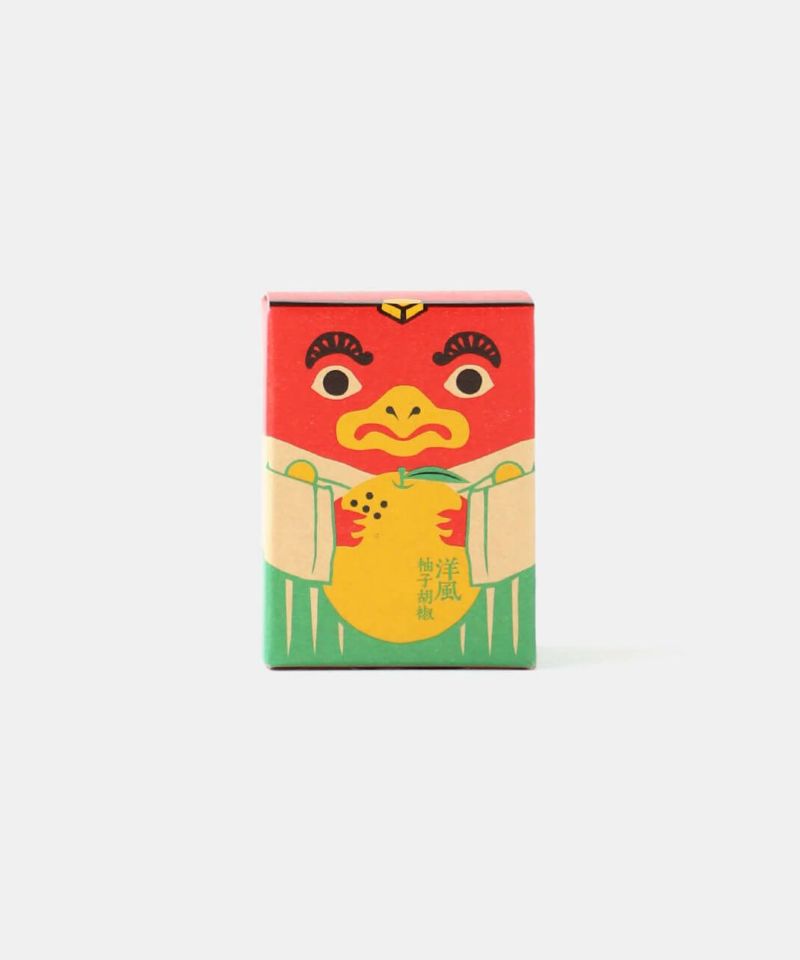 なんとも言えない愛くるしい表情のだるまの中には鮮やかな赤色の柚子胡椒が入っています。蓋をあけると広がる柚子の香り、一口食べるとピリリと辛い唐辛子。