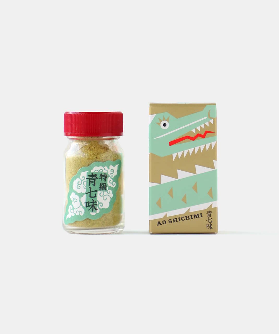 岡山県で生産された青唐辛子を使用した、珍しい青七味。 原料は全て国産にこだわり、厳選した素材を使用。 ピリリと辛い青唐辛子に加え、青シソ・あおさ・エゴマ・生姜・柚子皮・陳皮が爽やかな清涼感を感じさせてくれます。 焼き鳥などの肉料理から、麺類、焼き魚など幅広く利用できます。