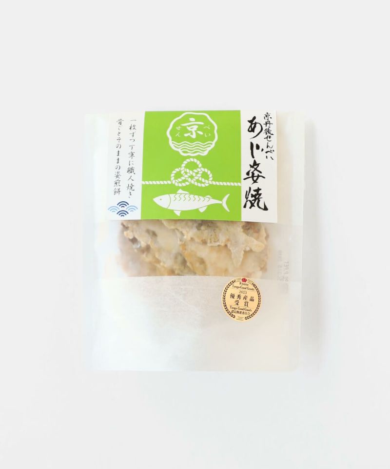 あじを丸ごと使い、香ばしく焼き上げた存在感のあるせんべい。魚の旨みがしっかりと感じられ、食べごたえも十分です。素朴で力強い味わいが、ゆったりとしたお茶の時間に寄り添います。