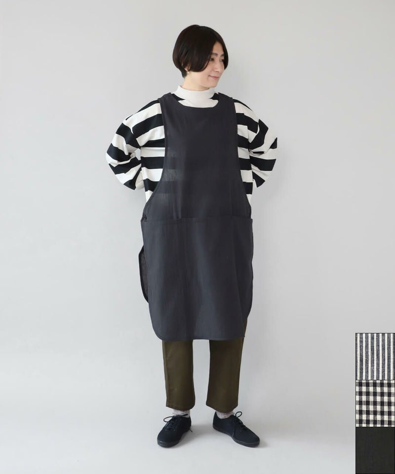 紐で結ぶ手間がなく、忙しい時でもサッと着られます。