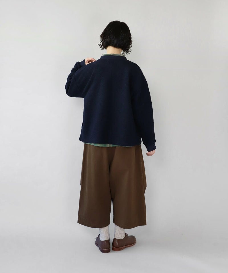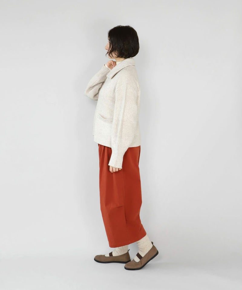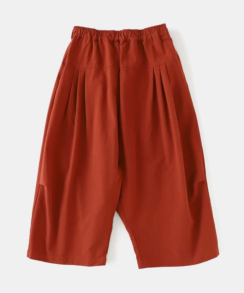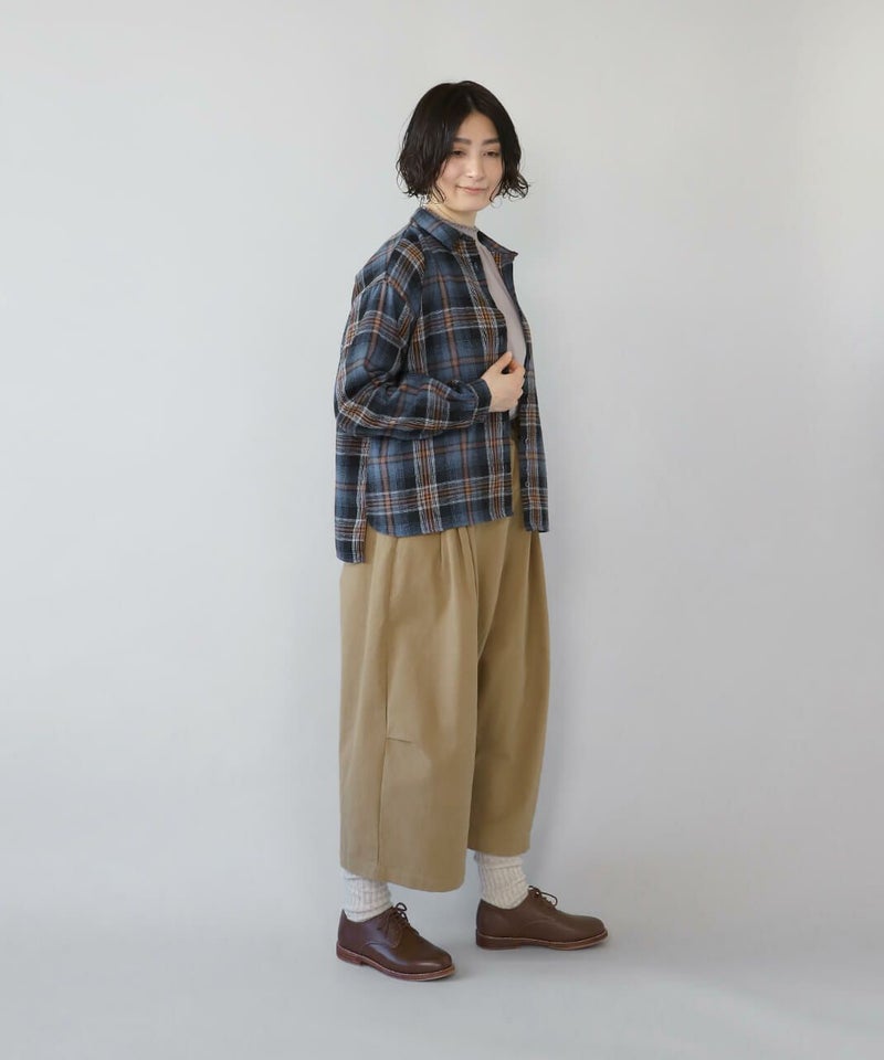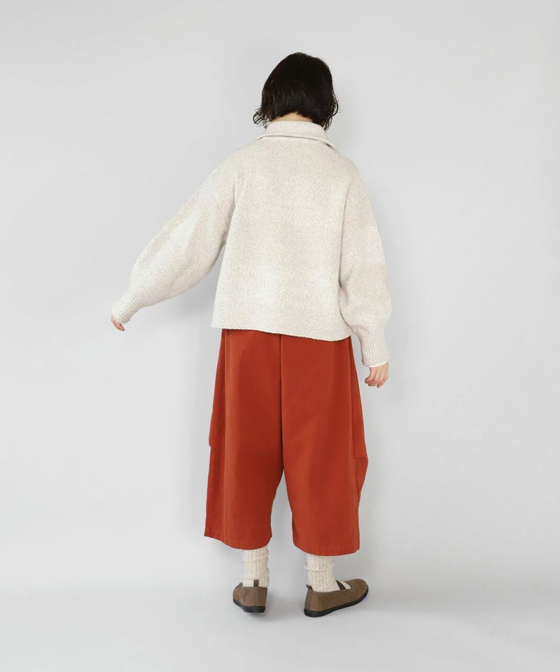 柔らかで密度のあるソフトコットン素材を使用したサルエルパンツです。生地表面にピーチ起毛を施したなめらかな肌触り。腰とすねにタック切替が、裾に向かってふんわりとしたコクーンシルエットに。サルエルの深めの股が上ゆったりとした履き心地です。ウエストはぐるりとゴム仕様で内紐付きのためサイズ調整可能です。サイドとバックにポケット付き。足首が見える丈感は靴下選びも楽しめます。