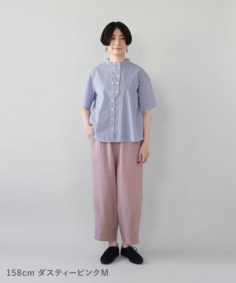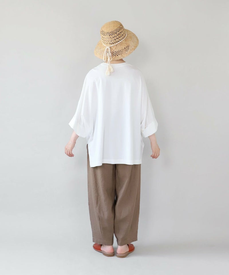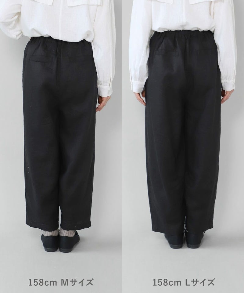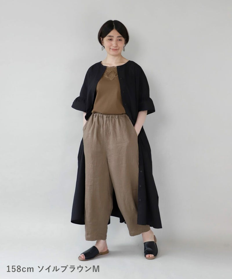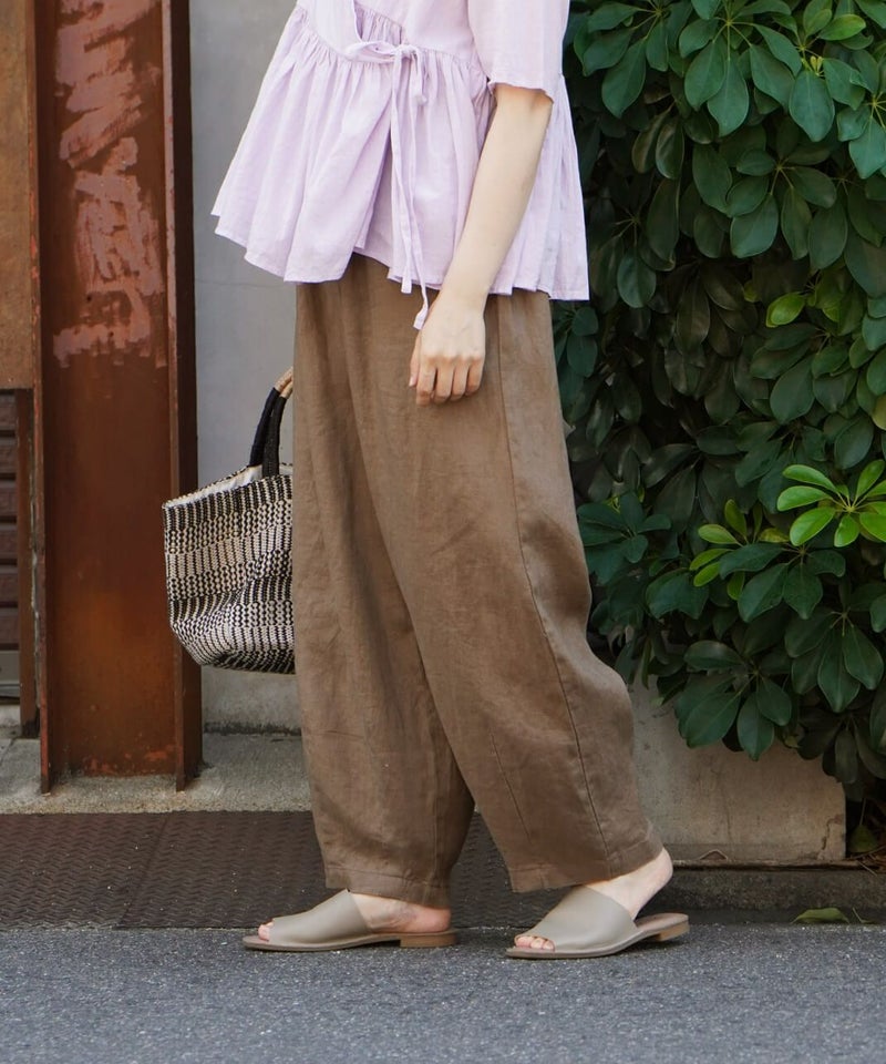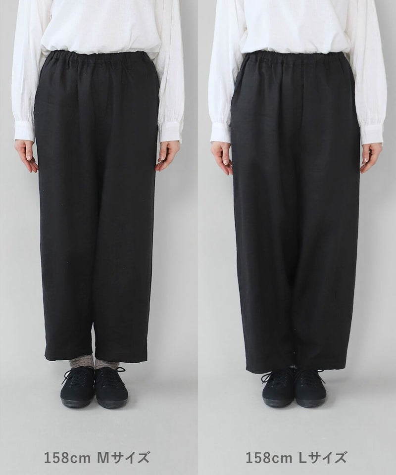 生地には柔らかな14番手リネンを使用し、ナチュラルな風合いに仕上げました。ゆったりとした履き心地で、裏地付きが嬉しいポイント。通年着回せる1着です。