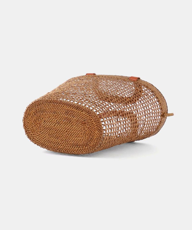 天然草木(アタ)を編み込んだバケツ型のかごバッグ。