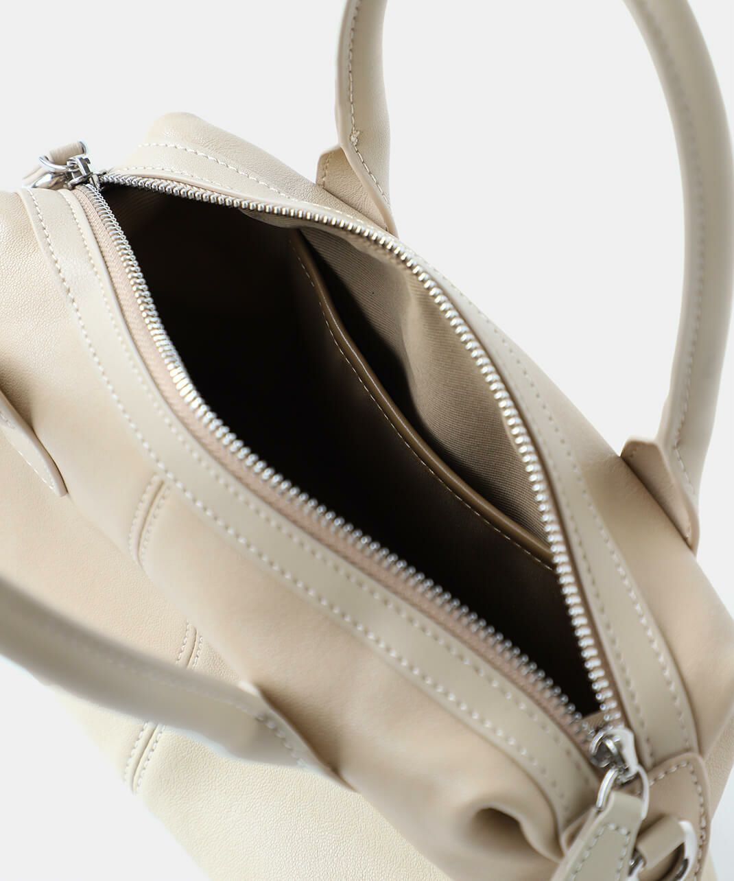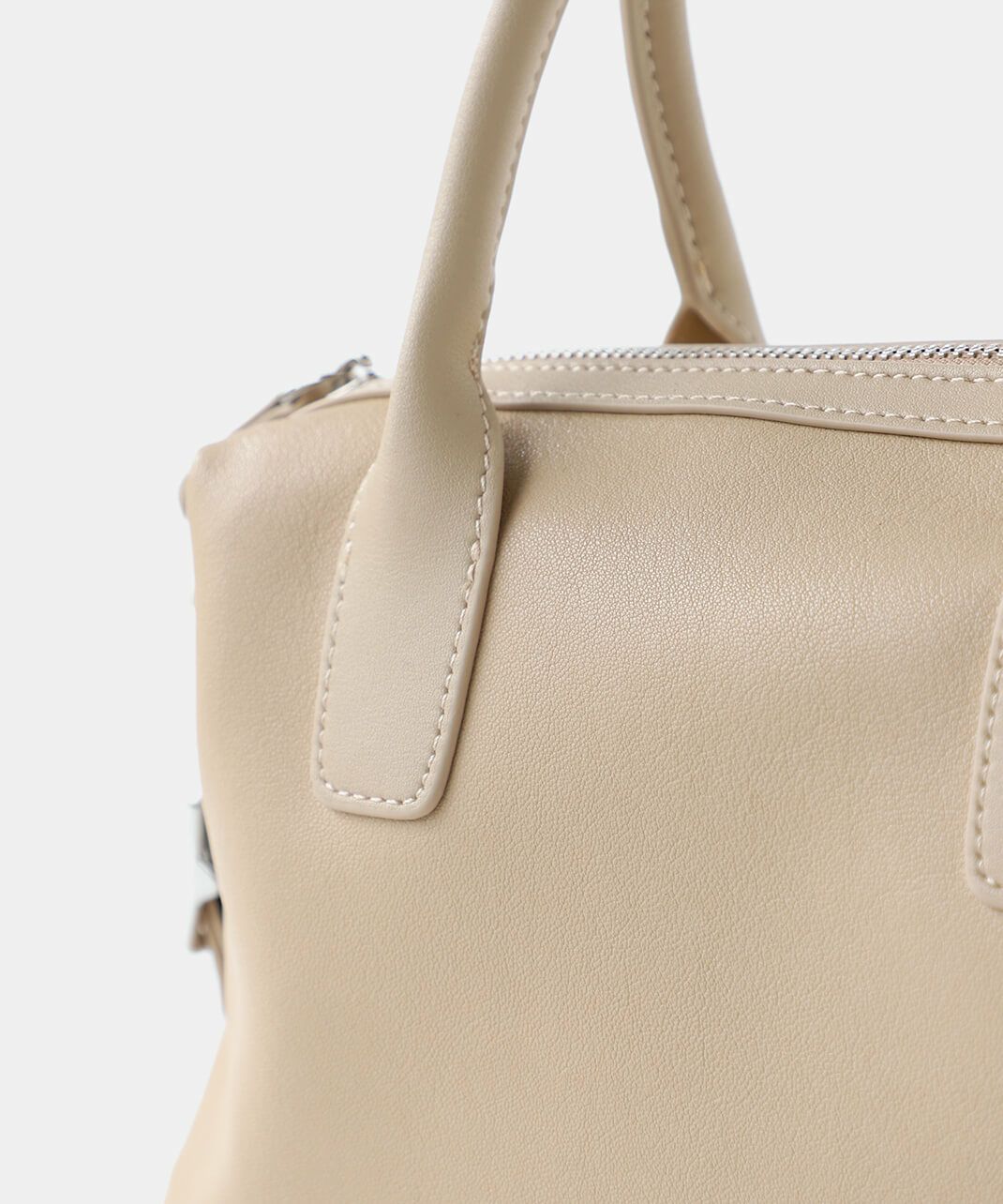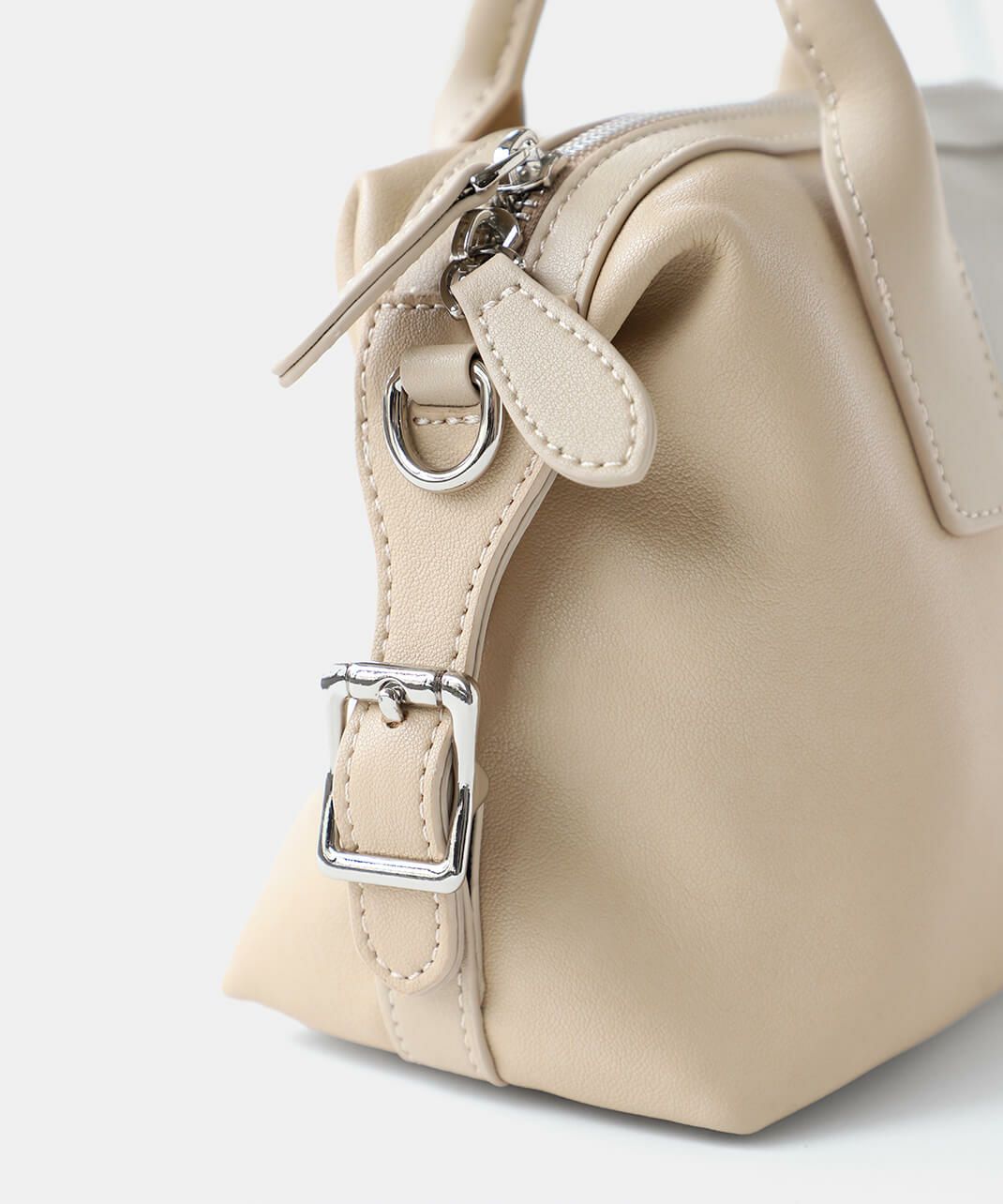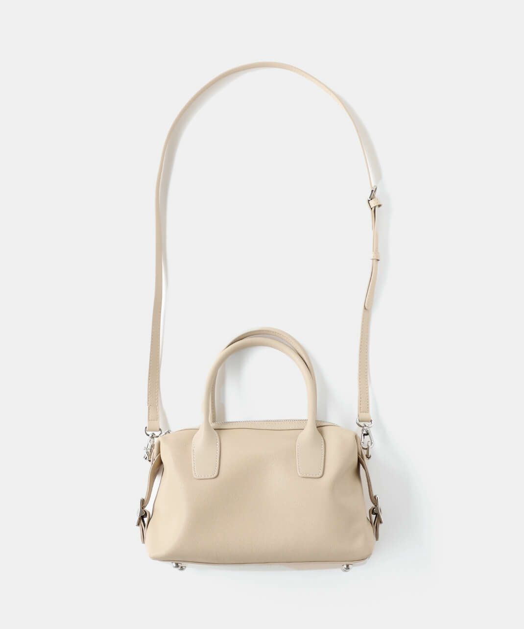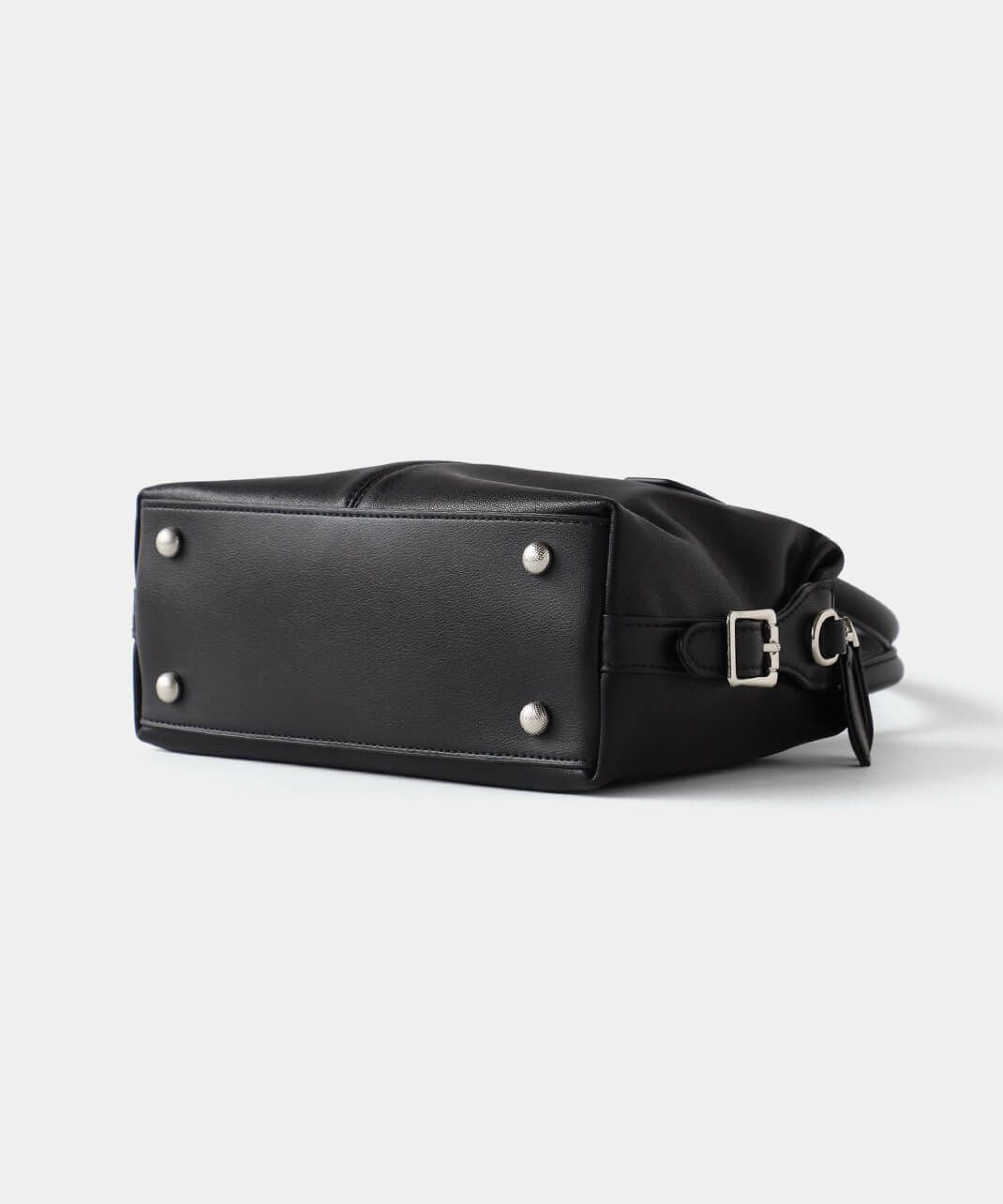 牛革のサイドにベルトのデザインがはいったハンドバッグ。 ショルダーストラップが付属している2WAY仕様です。 シボ感や光沢のないスムースな革の質感で、しっかりとした形は保ちながら適度に柔らかく扱いやすいバッグです。