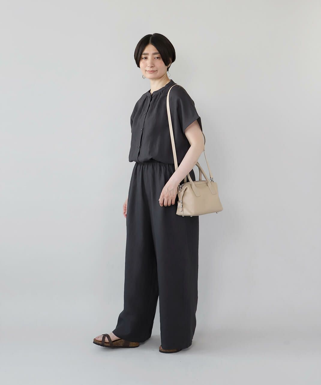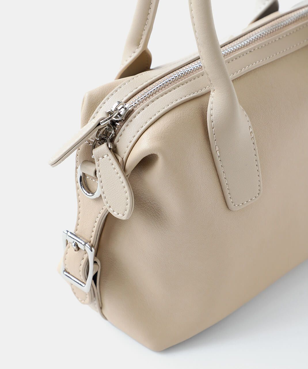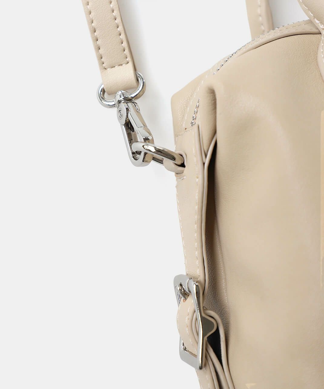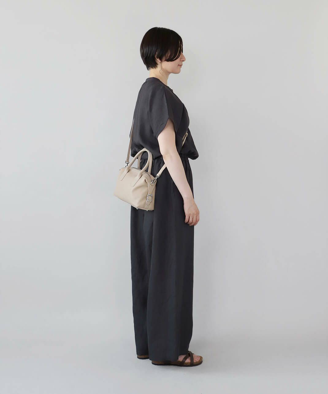 牛革のサイドにベルトのデザインがはいったハンドバッグ。 ショルダーストラップが付属している2WAY仕様です。 シボ感や光沢のないスムースな革の質感で、しっかりとした形は保ちながら適度に柔らかく扱いやすいバッグです。