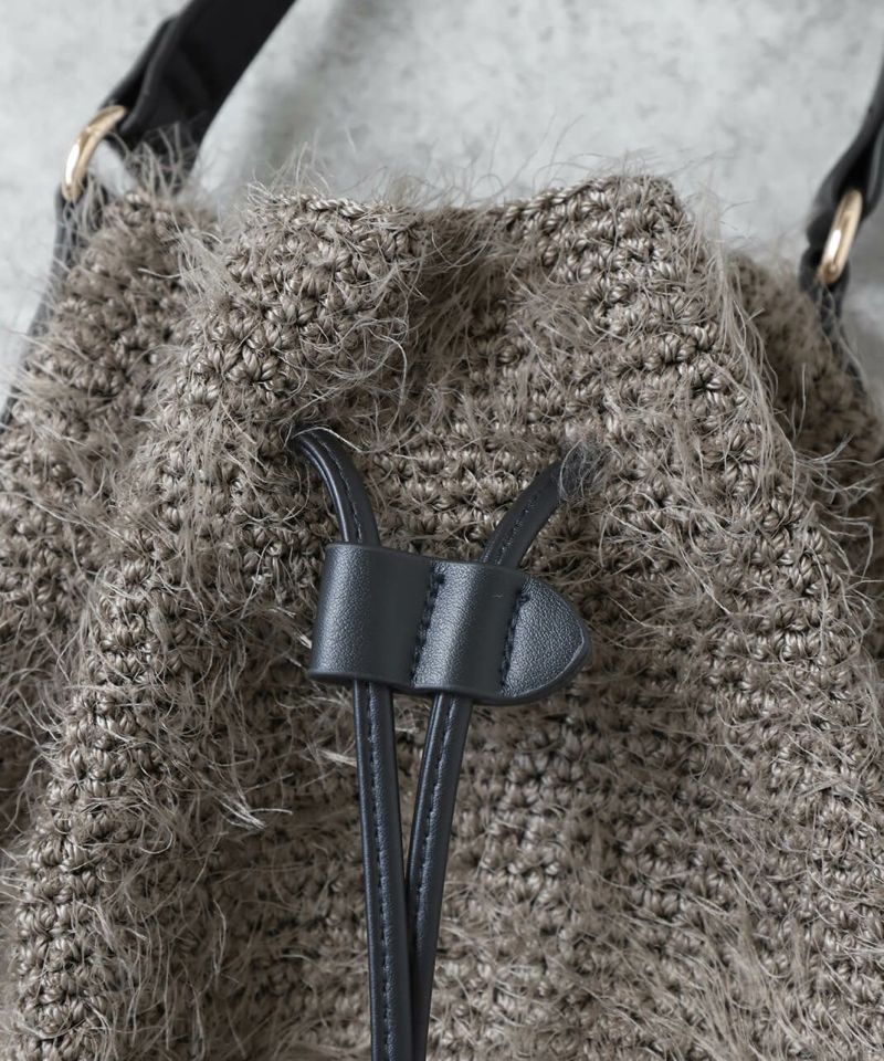 うっすらとシャギー加工されたニット生地のショルダーバッグです。