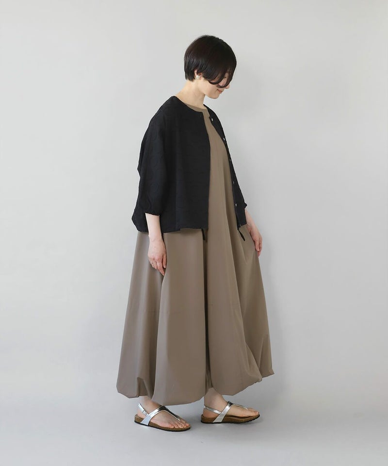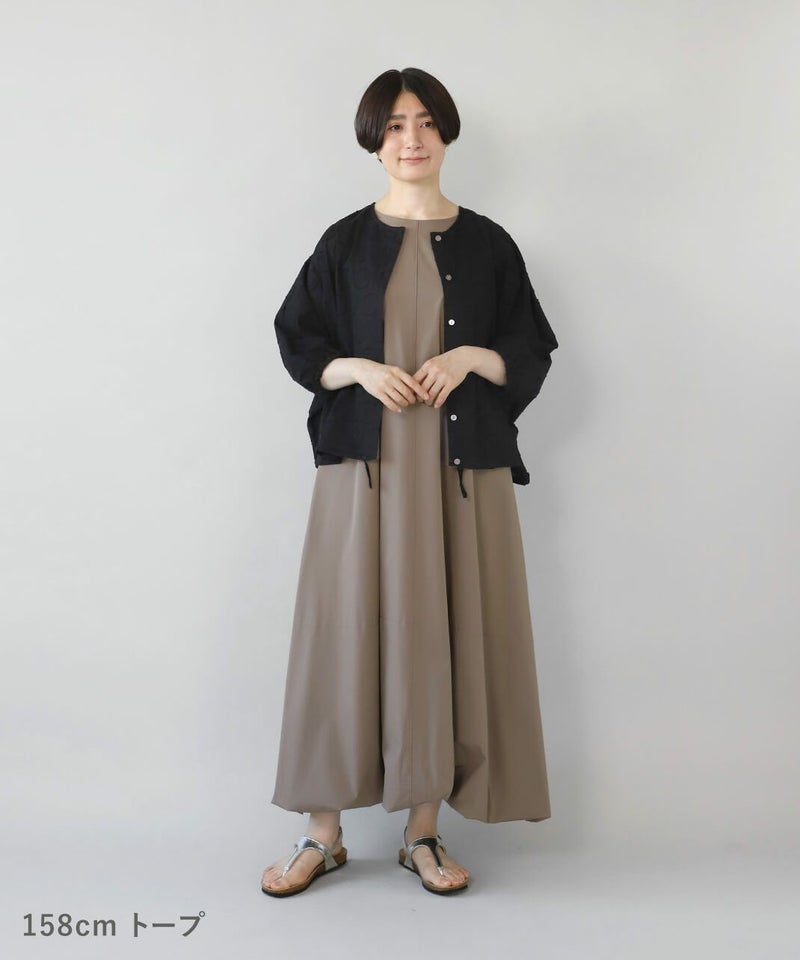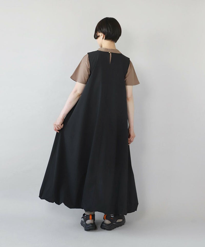 接触冷感・UVカット・シワが付きにくい・ストレッチ・撥水加工 5つのメリット付きのバルーンワンピースです。 ノースリーブとふんわり広がるバルーンシルエットがこの夏にぴったりで大活躍の予感。ストレッチ入りの素材が快適さをプラスしてくれます。 ブラウスやカーディガンと合わせれば、コーディネートの幅が広がります。