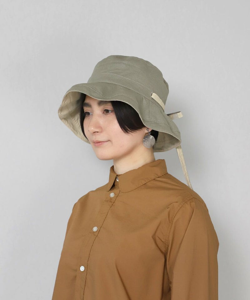 コットン×リネンの表裏で異なる素材を使用したリバーシブルハット。