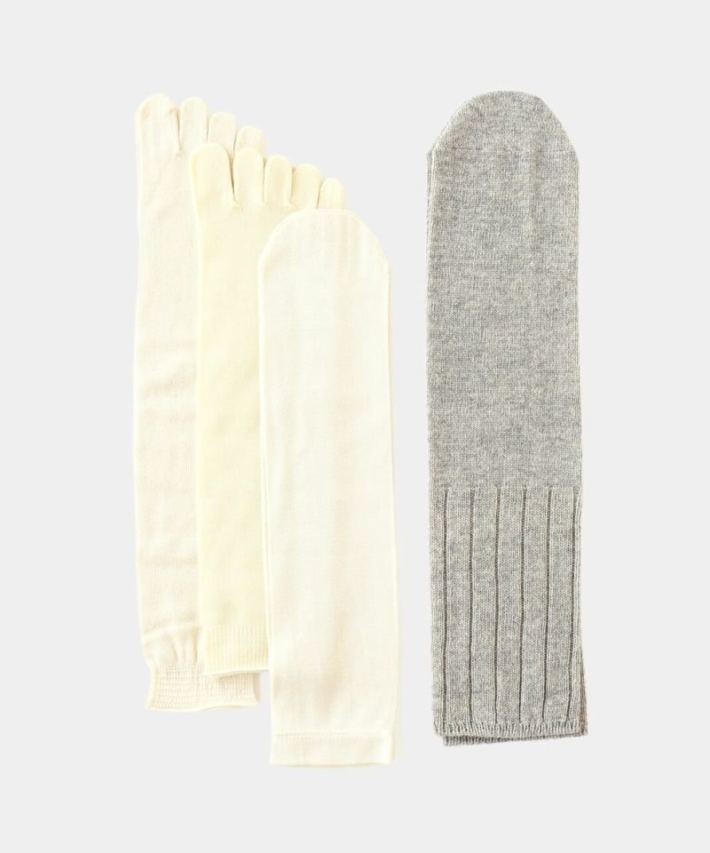 そのため、ウールが汗などの水分を吸湿しても、肌に触れる部分はベタベタせず快適に過ごせるのです。 このセットに含まれる靴下は、くらしきぬスタッフが何度も何度も試着して完成させたこだわりの靴下。 履き口が重ならないよう4足それぞれ違う丈の長さにしたり、4足目のカバーソックスは全体をカバーできるよう長めにしたり。 冷えとりを実践しているスタッフだからこその”細かなこだわり”を詰め込みました。