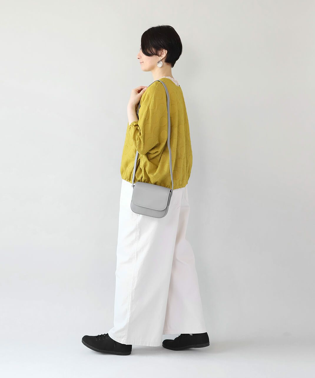 合皮素材のポーチ付きバケツ型ショルダーバッグ