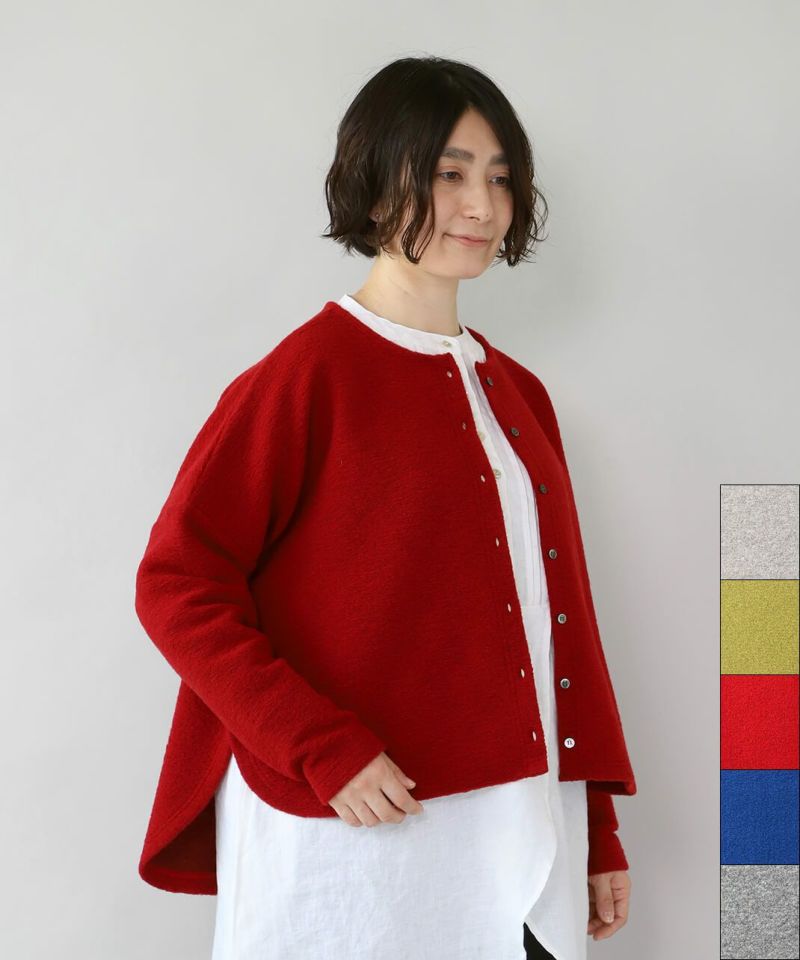 軽くて温かみのあるスライバーニットのワイドカーディガンです。繊維を糸にせずに、そのまま編み込んだ上質なイタリア産のスライバーニットは軽くて温かみがあり、ふんわりとやわらかい着心地。ゆったりした身頃に深めのサイドスリットと前後差のあるシルエットは、絶妙なバランス感でコーディネートを引き立ててくれます。インナーが引き立つようにラウンドさせたスリットは、mumokutekiの特別仕様です。