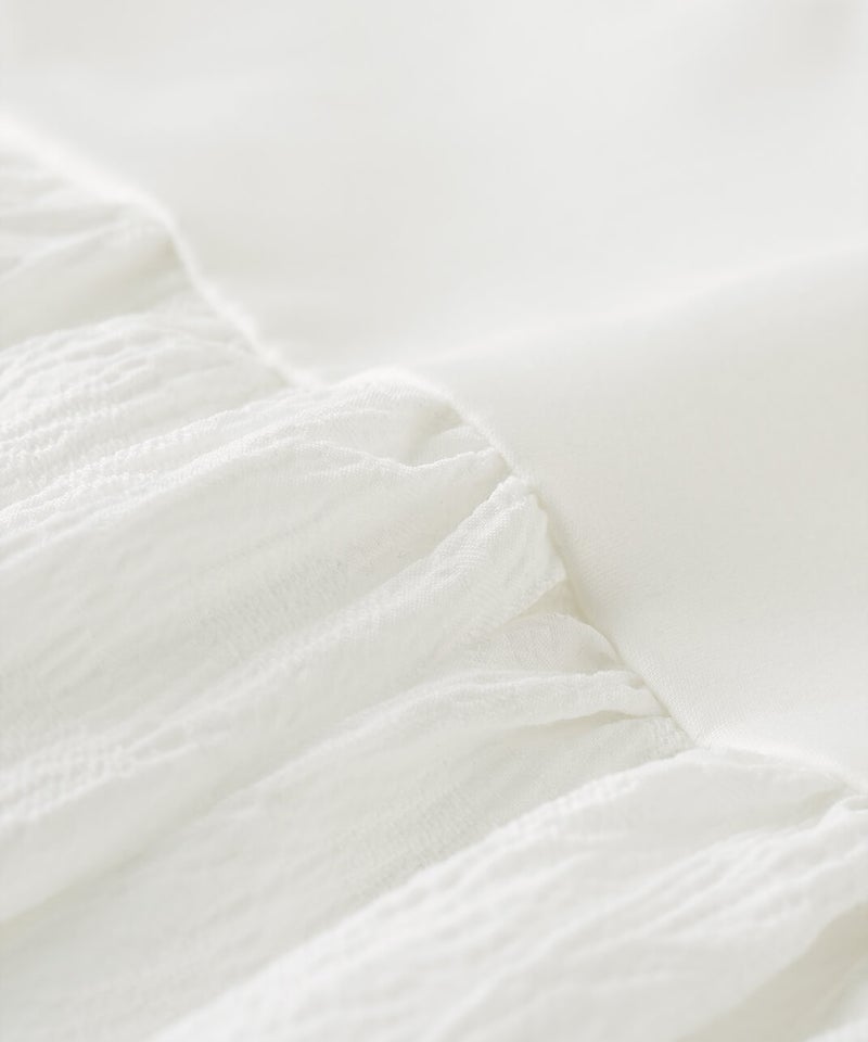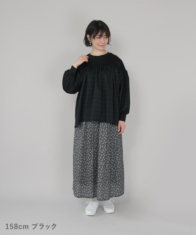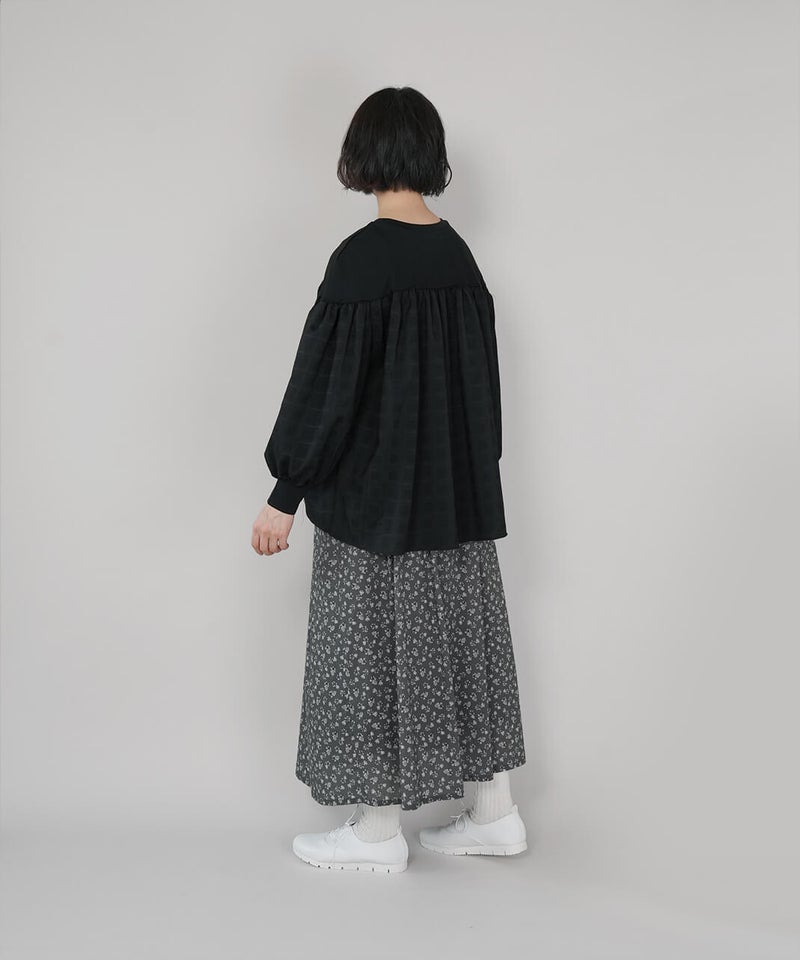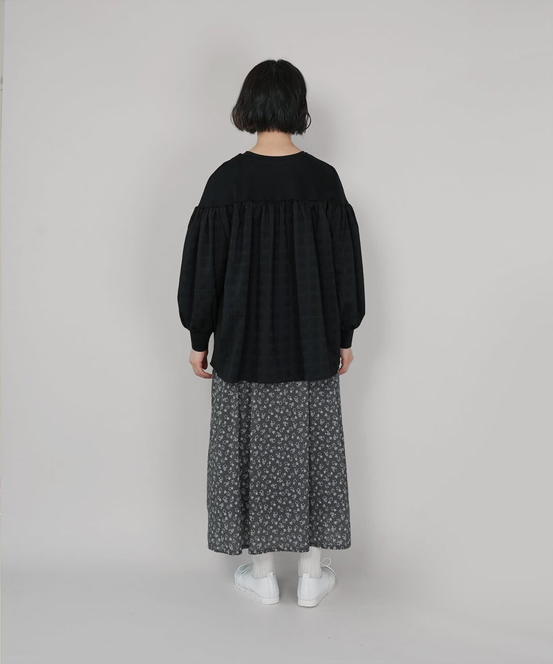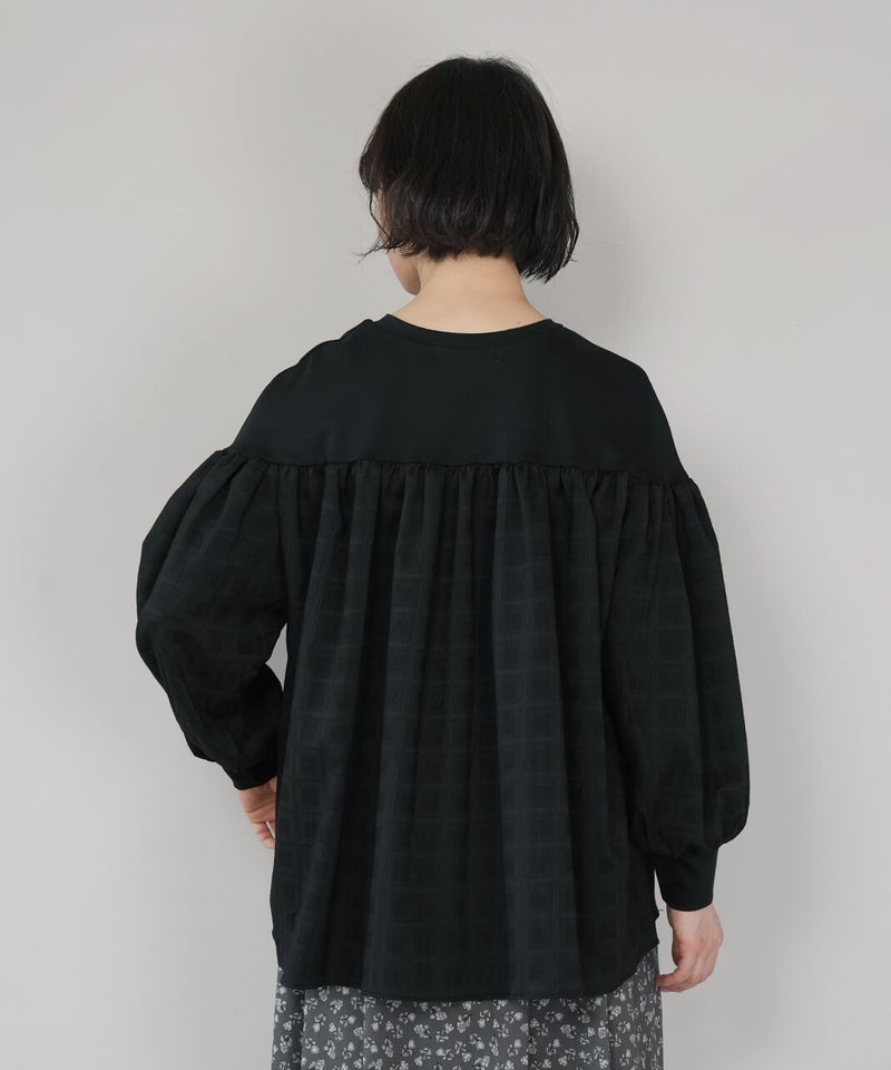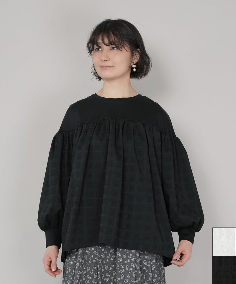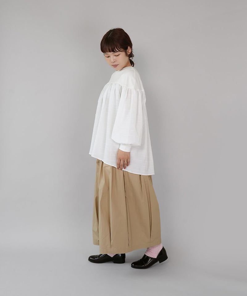 コットンとポリエステルをブレンドした、軽やかなカットソー。ほどよくボリュームのある袖がさりげないアクセントになり、シンプルながらも着映えするデザイン。胸元にたっぷりと施されたギャザーがふんわりとした立体感を生み、上品な印象の1着です。ゆったりとしたシルエットで身体のラインを拾わず、リラックス感のある着心地も魅力。ほんのり透け感のある素材は涼しげで、これからの季節にもぴったりです。