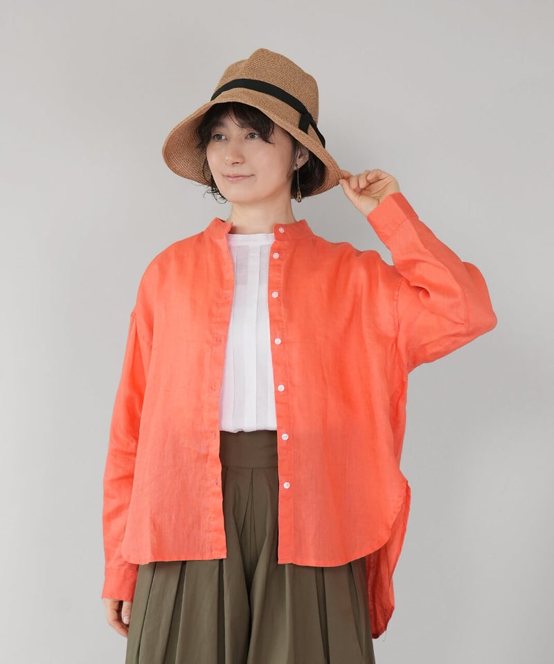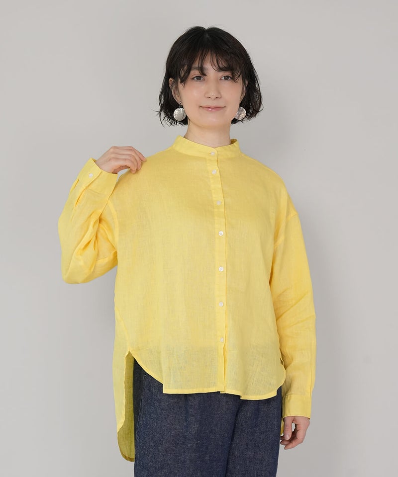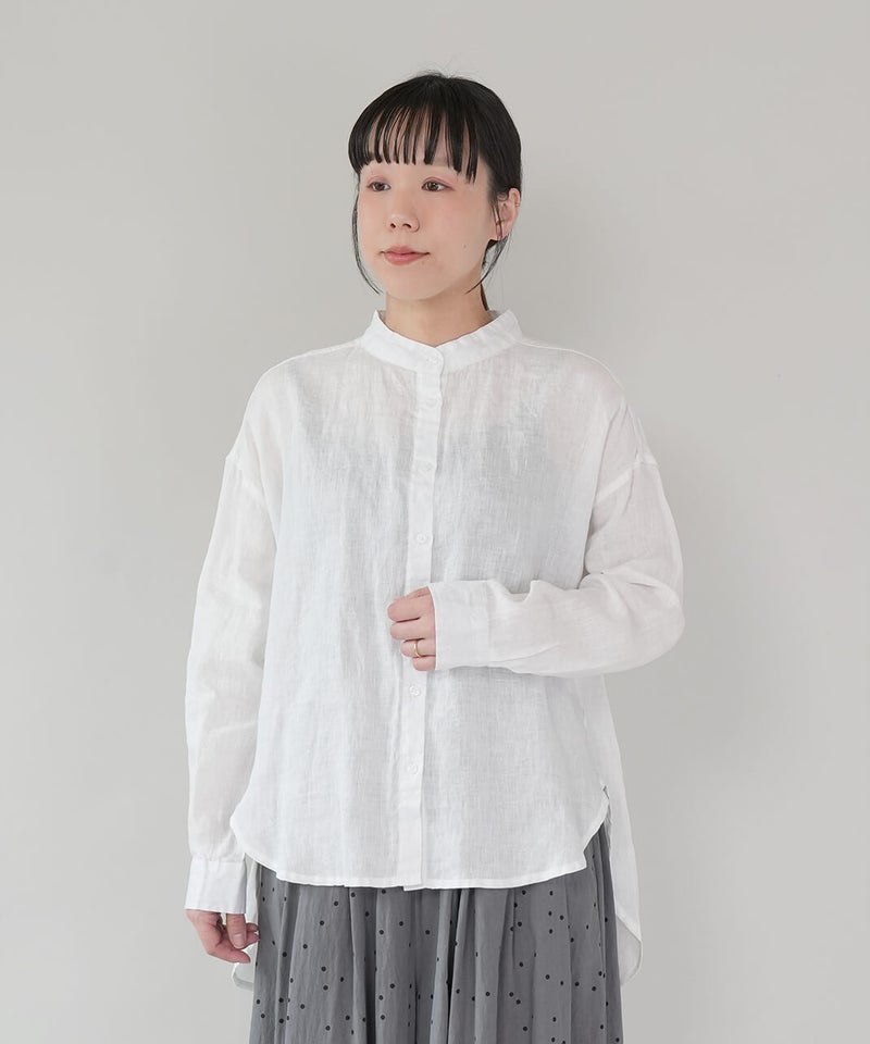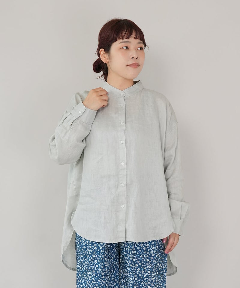 やわらかな肌ざわりと、しなやかなハリ感が魅力のリネンブラウスです。後ろをやや長めにした、バランスの取りやすいチュニックデザインに仕上げました。ノーカラーのすっきりとしたデザインに、ゆったりとしたサイズ感で抜け感をプラス。シンプルながらも大人らしい印象です。前後差のある丈感は、身体のラインをさりげなくカバーしつつ、軽やかな動きを演出してくれます。ブラウスとしてはもちろん、軽やかな羽織りとしても活躍し、季節の変わり目にも重宝する1着です。