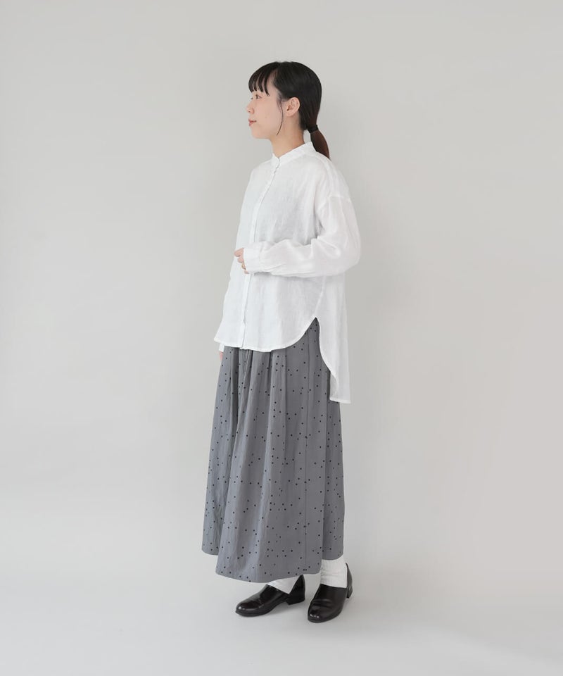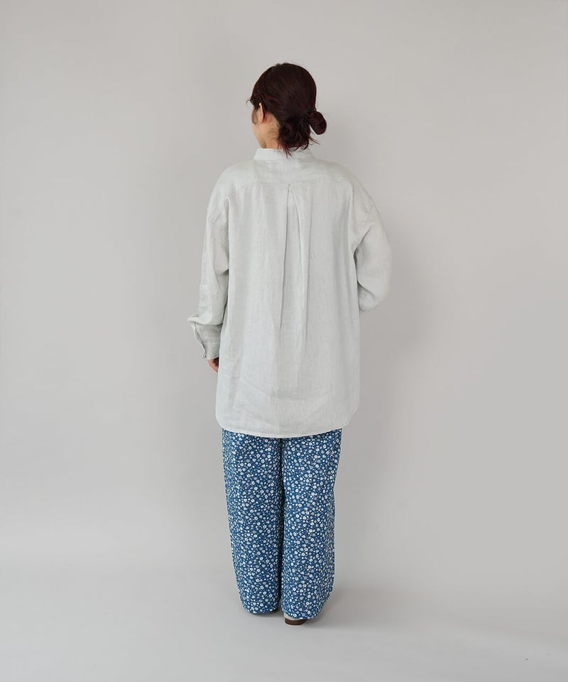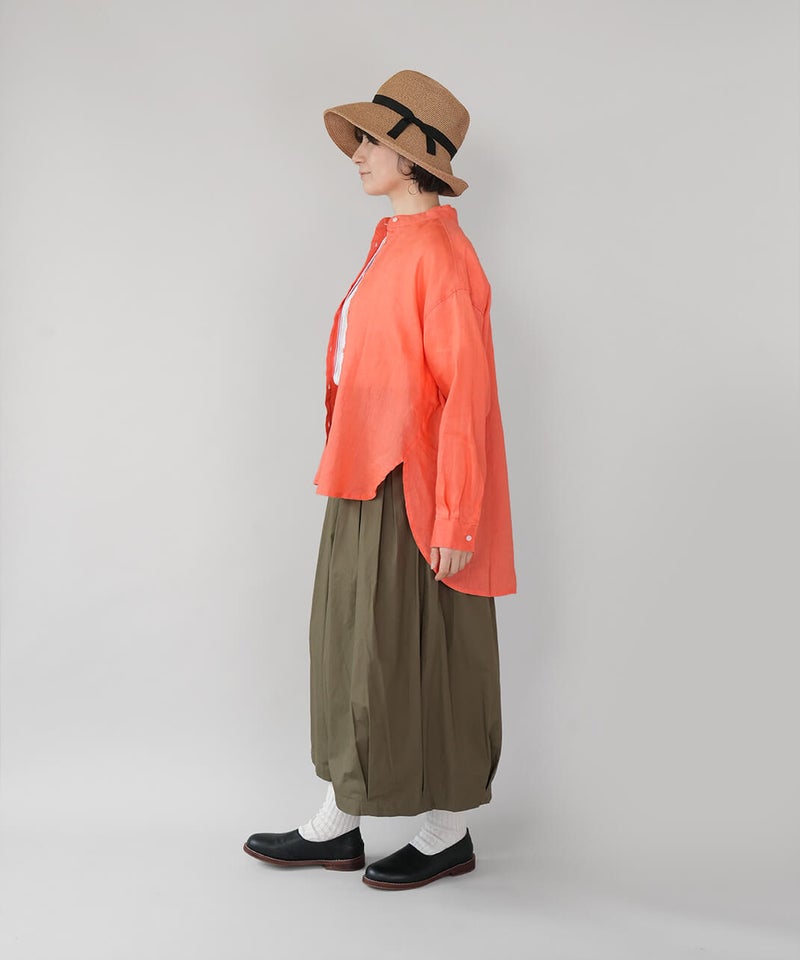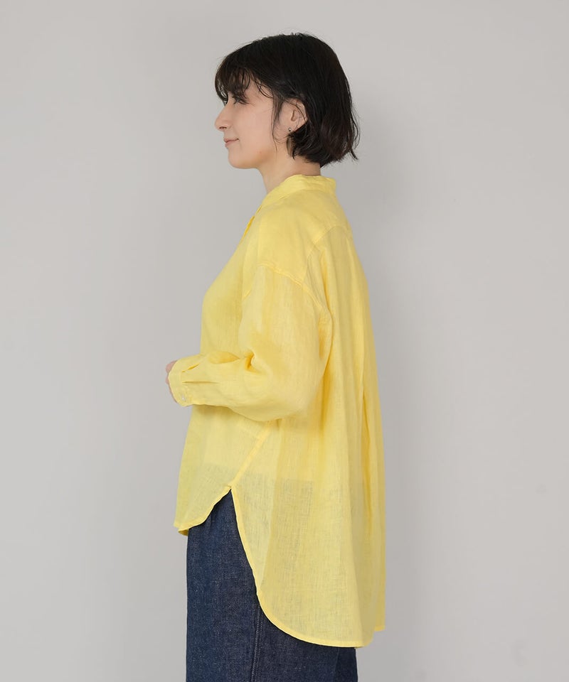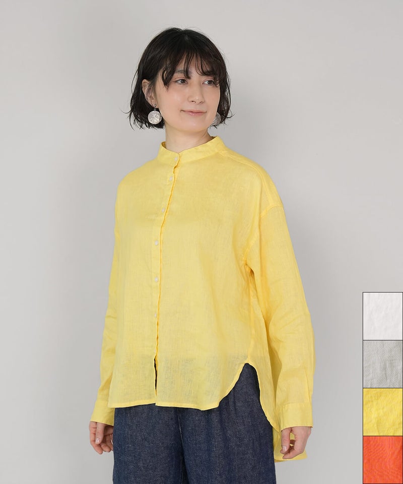 やわらかな肌ざわりと、しなやかなハリ感が魅力のリネンブラウスです。後ろをやや長めにした、バランスの取りやすいチュニックデザインに仕上げました。ノーカラーのすっきりとしたデザインに、ゆったりとしたサイズ感で抜け感をプラス。シンプルながらも大人らしい印象です。前後差のある丈感は、身体のラインをさりげなくカバーしつつ、軽やかな動きを演出してくれます。ブラウスとしてはもちろん、軽やかな羽織りとしても活躍し、季節の変わり目にも重宝する1着です。